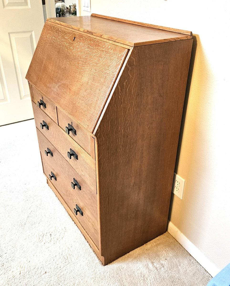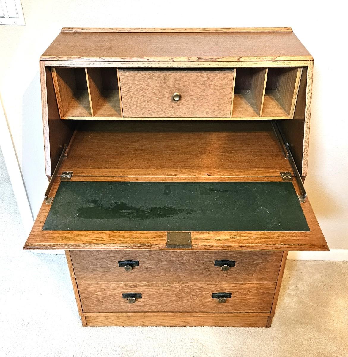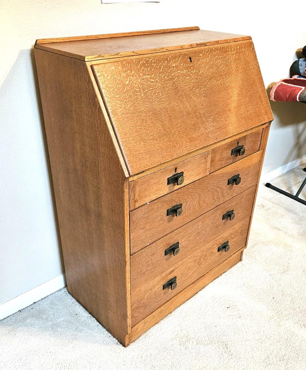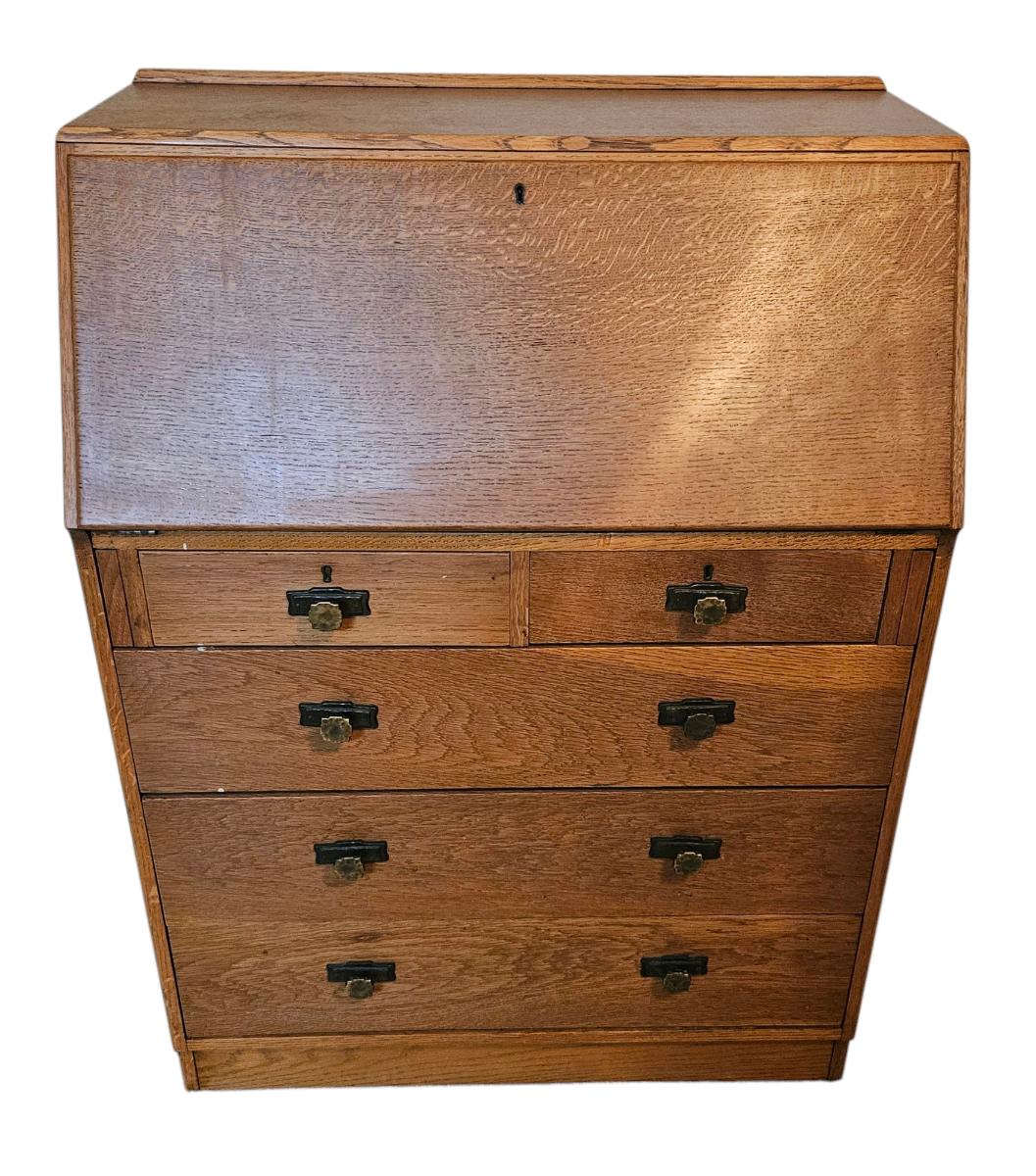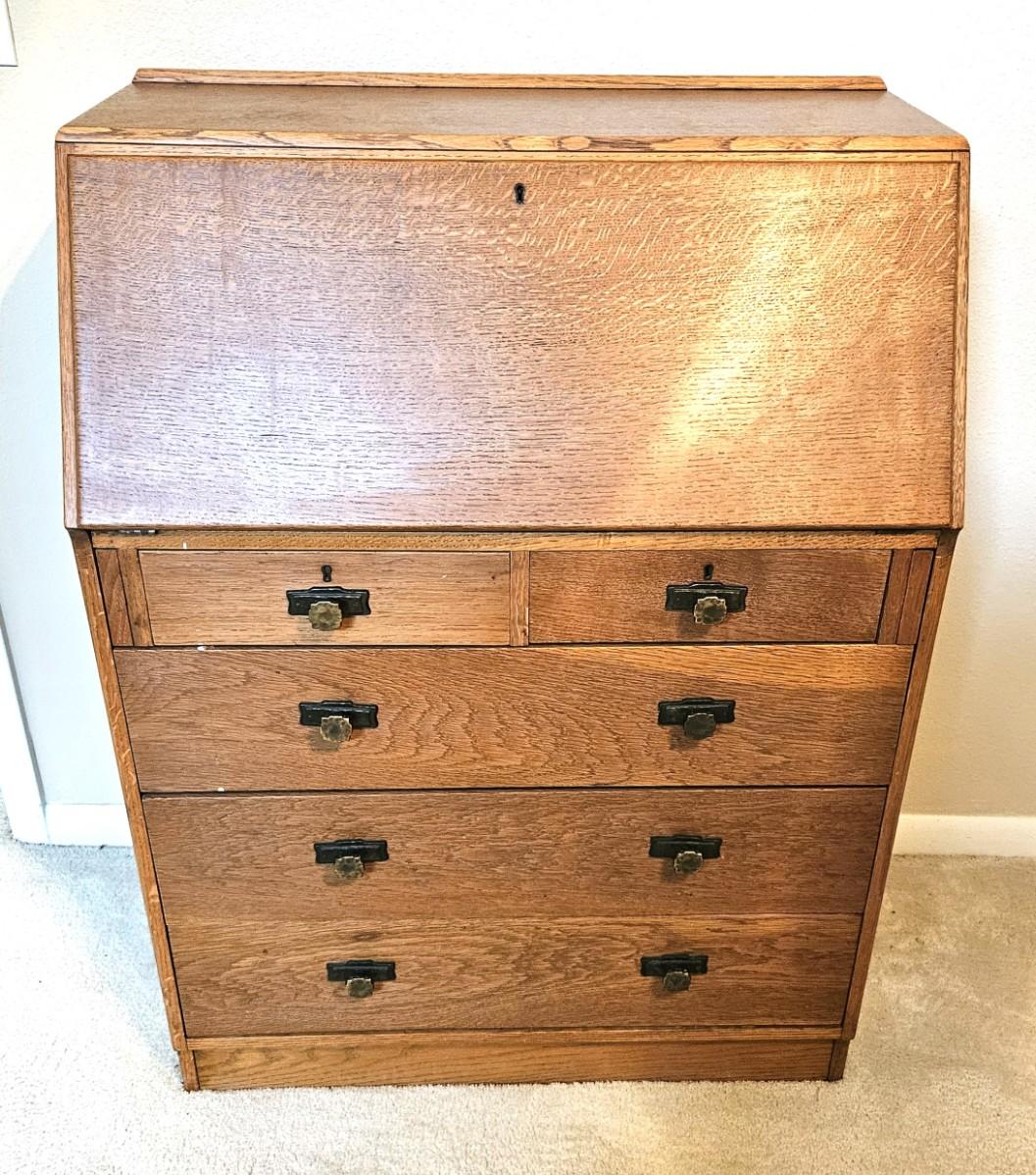 Antique Oak Secretary Desk with Slant-Front