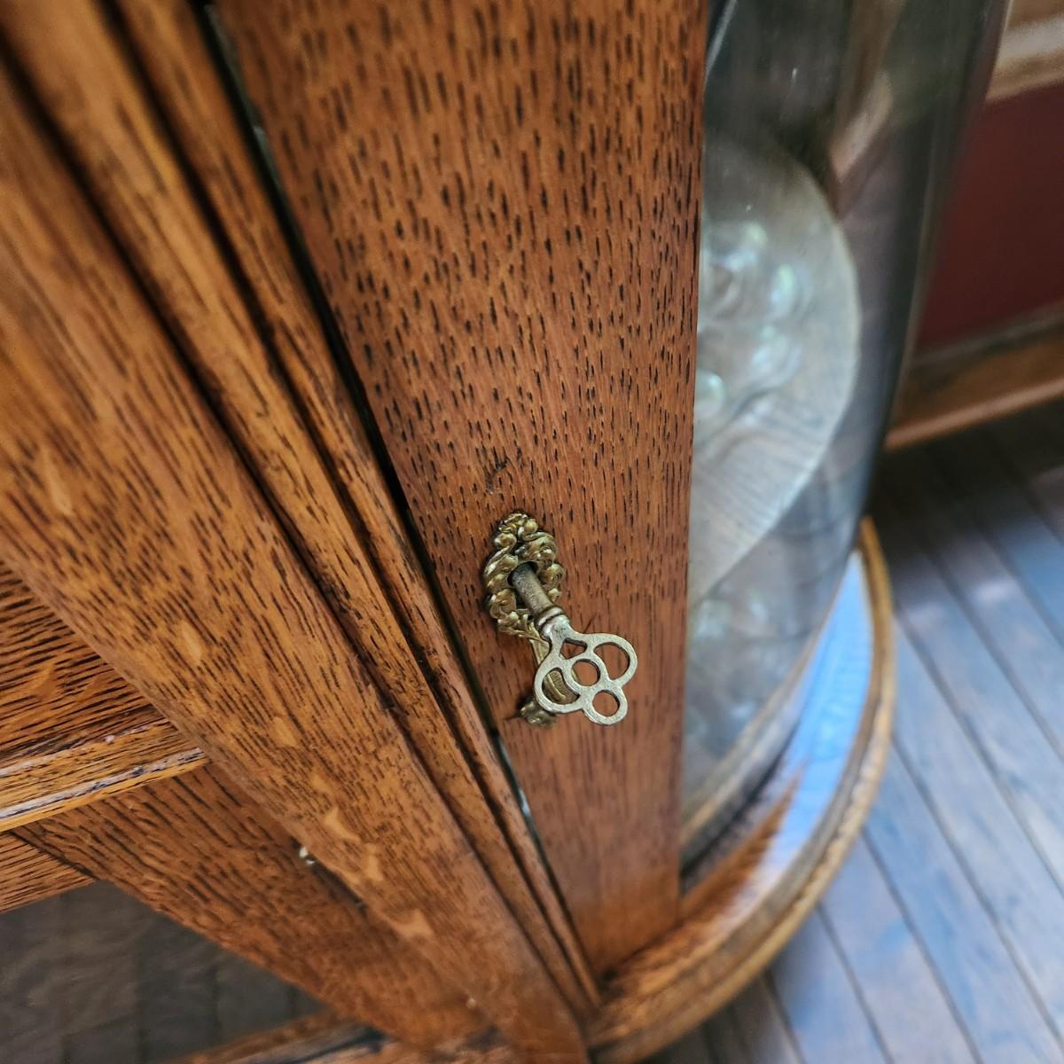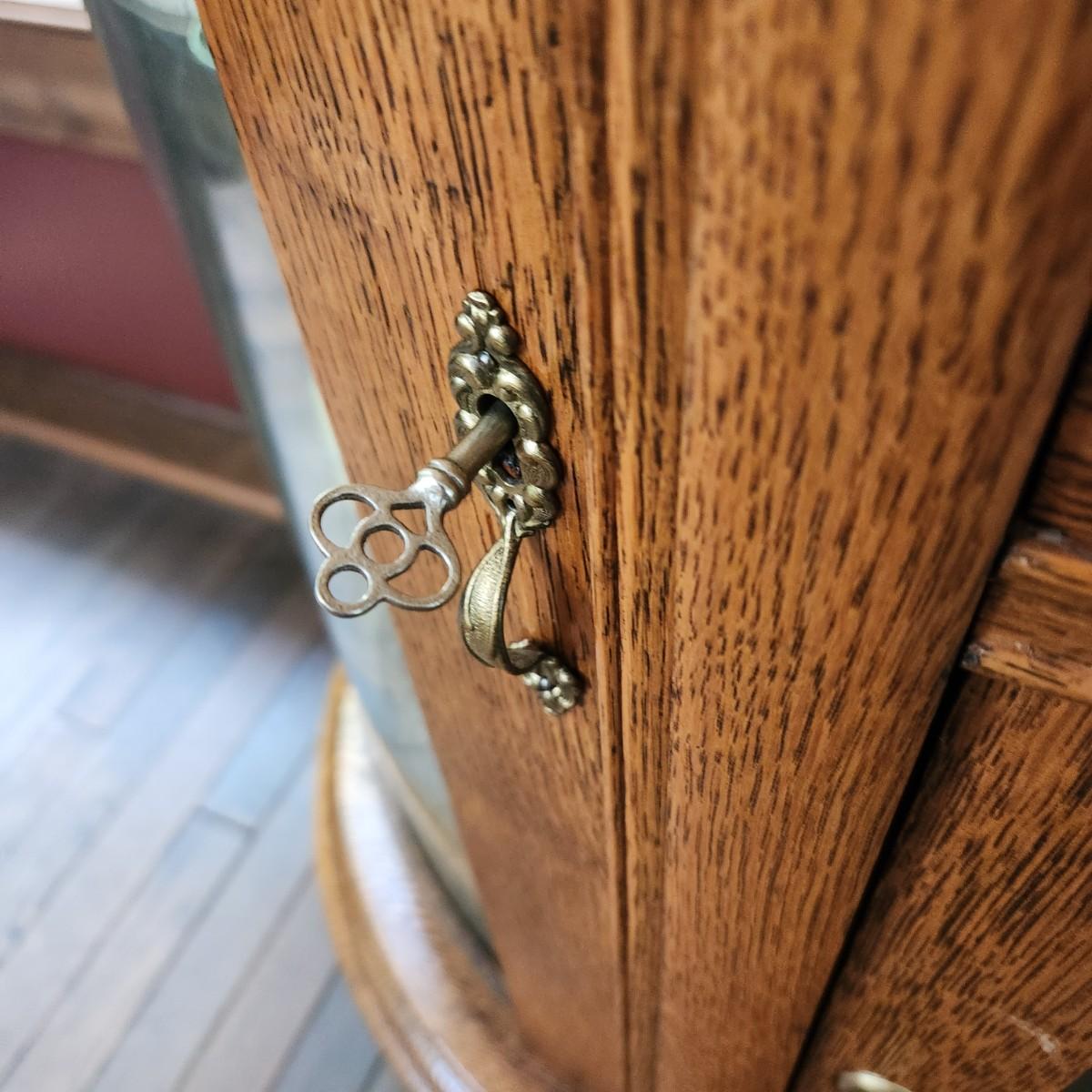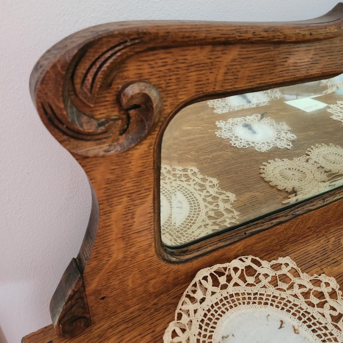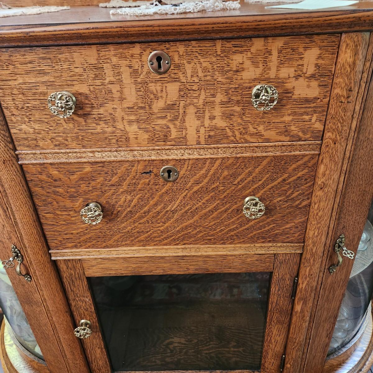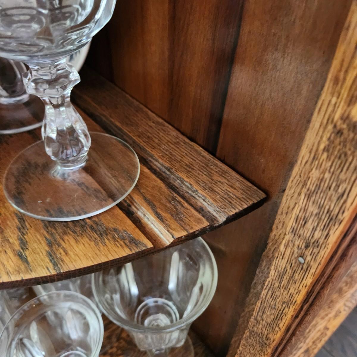 Antique Oak Sideboard Buffet Curved Glass Side Doors Beveled Mirror Carved Feet on Casters 40x16x50