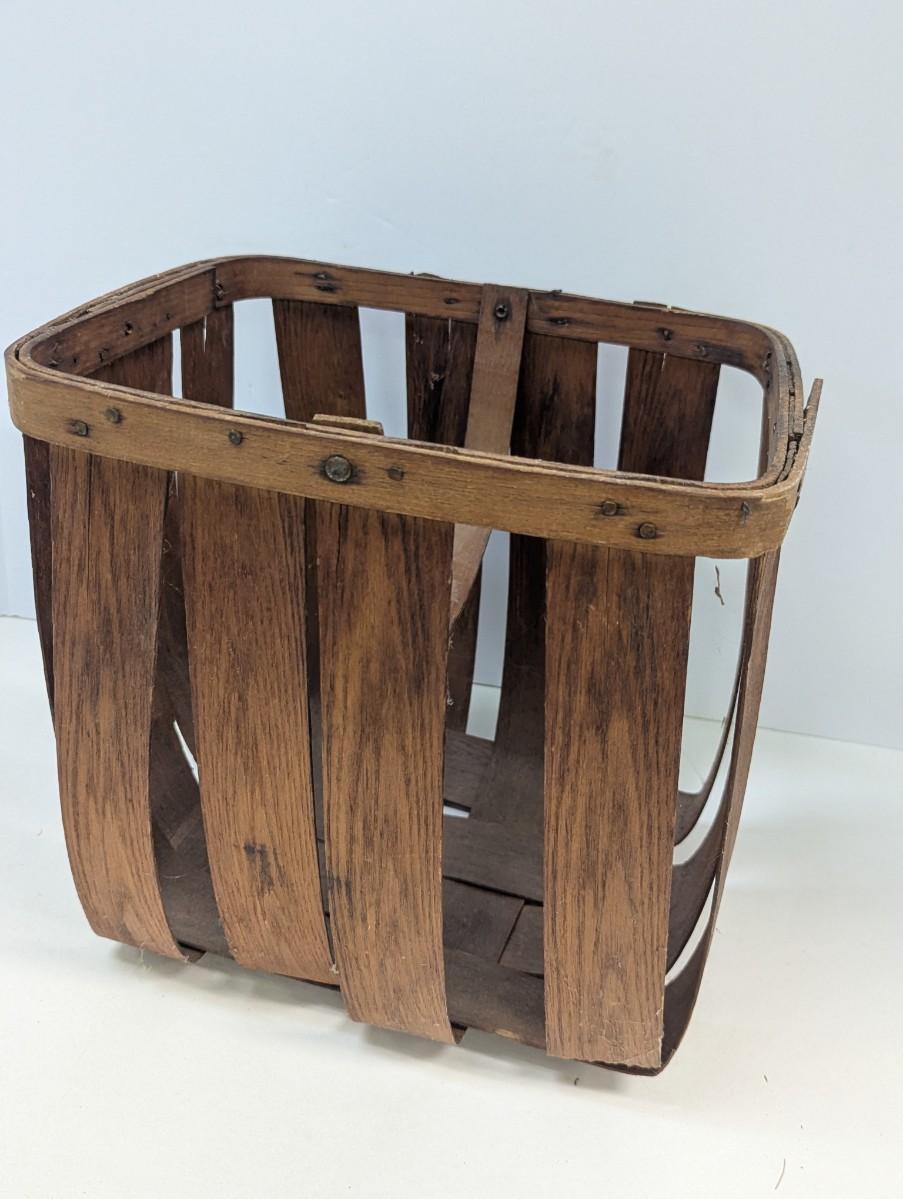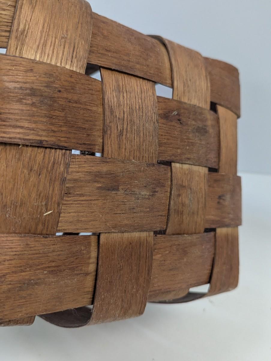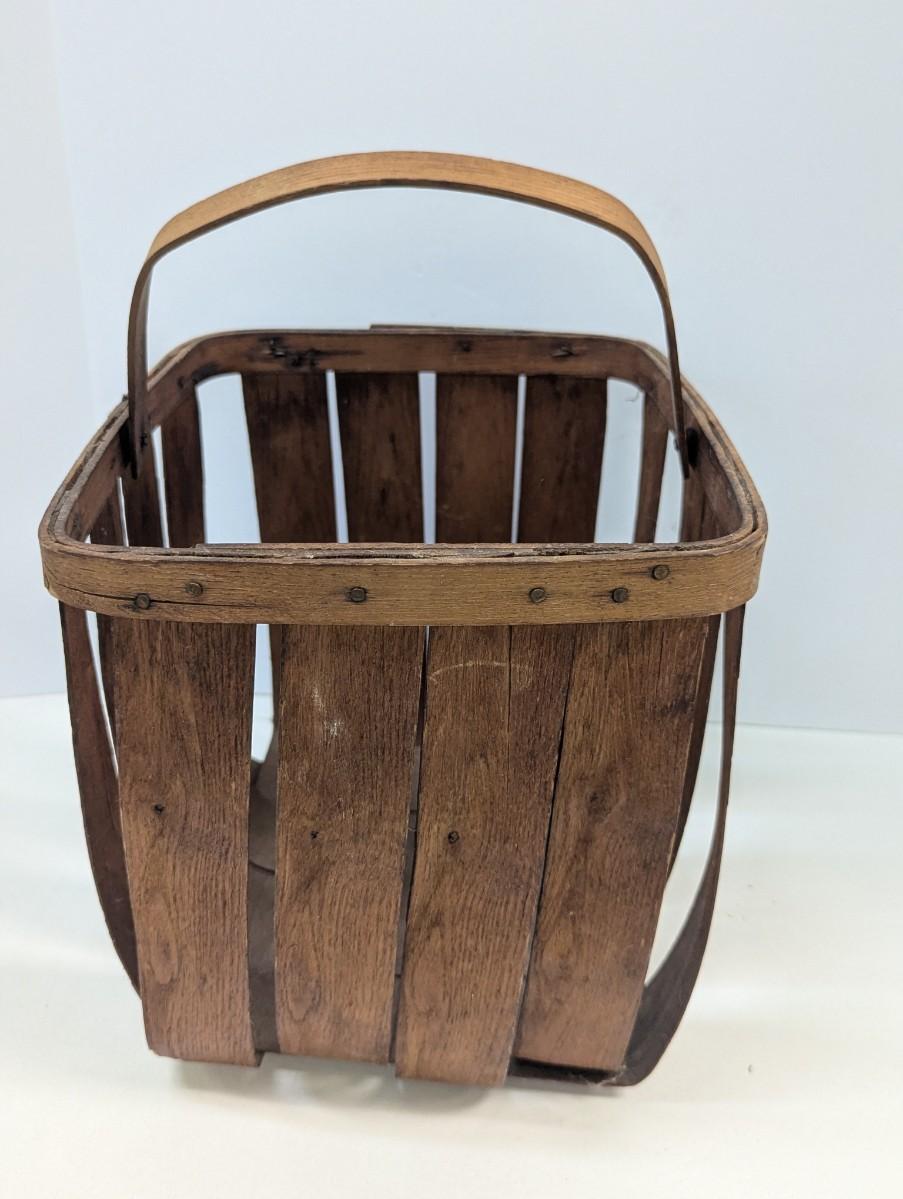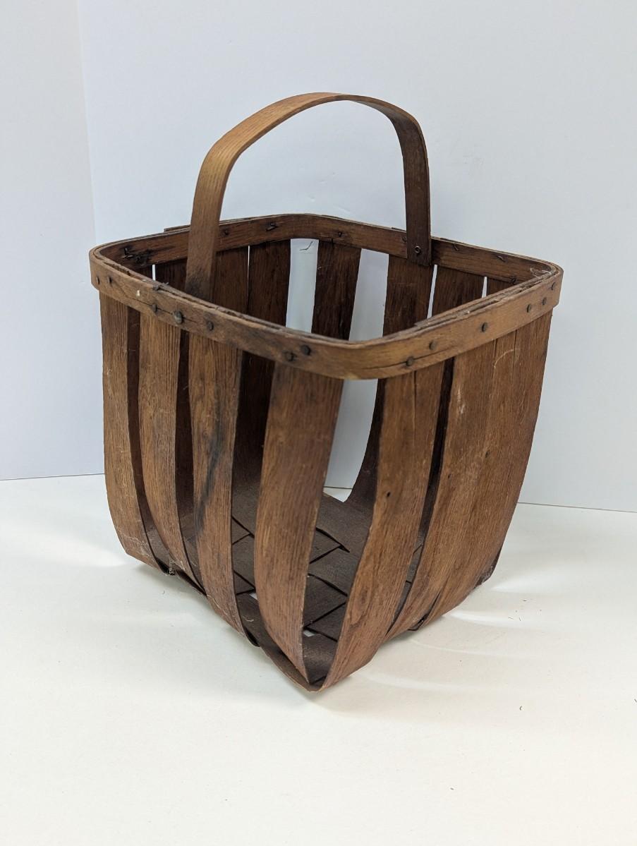 Antique Oak Splint Basket Rectangle Swing Handle Possibly 1800's