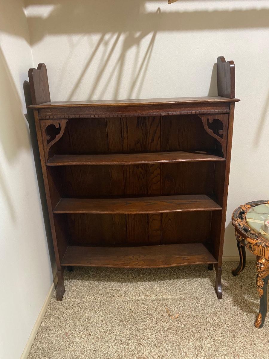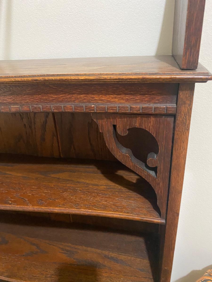 Antique Oak Three Shelf Bookcase Display Cabinet