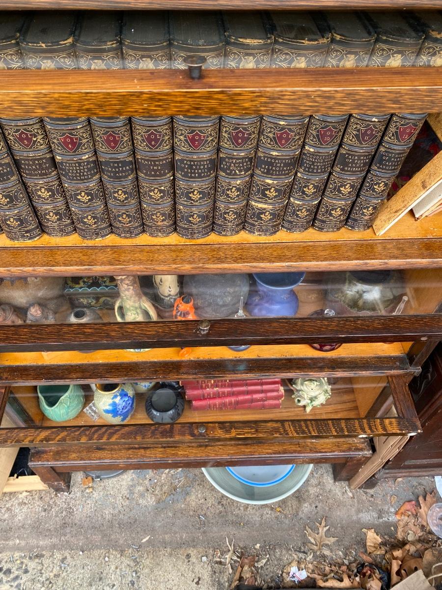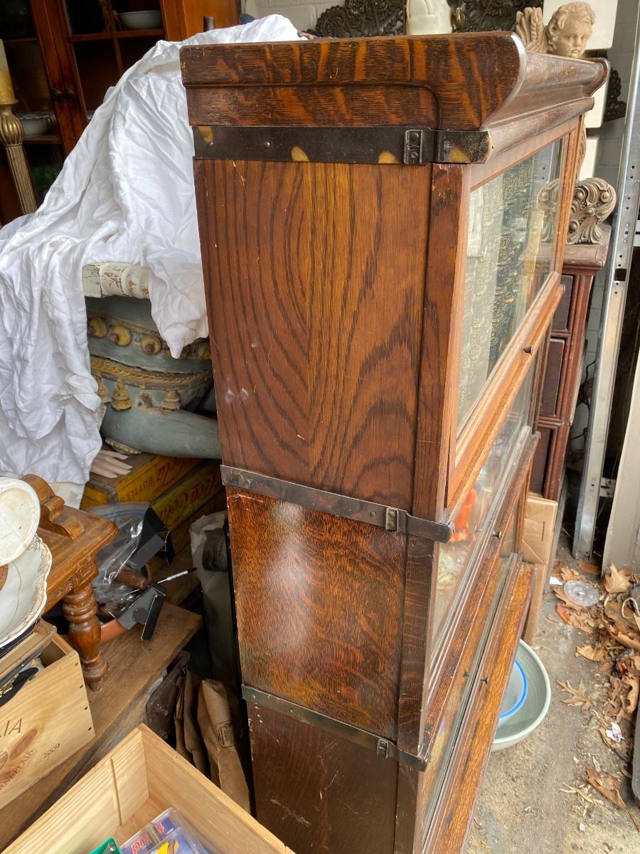Barrister’s Cabinet Wood Antique Lawyers Bookcase Glass Shelf . Glass doors lift up to access contents. Brass details. CONTENTS ARE NOT INCLUDED