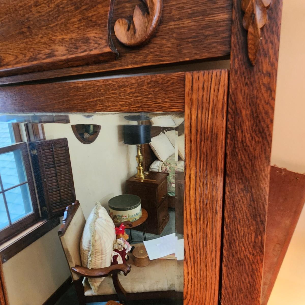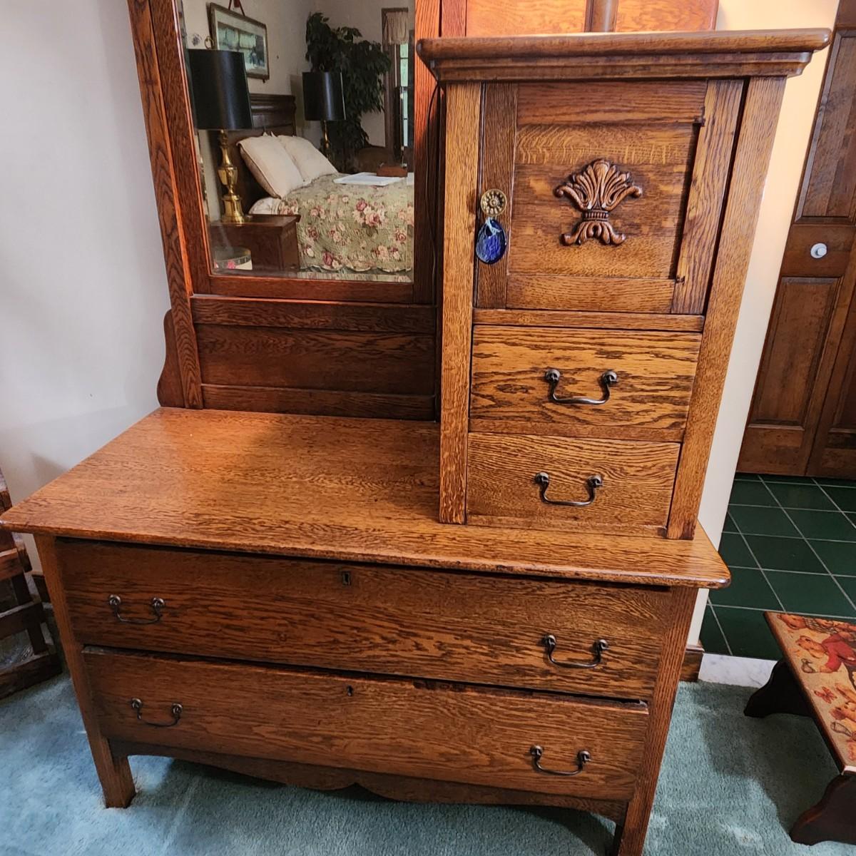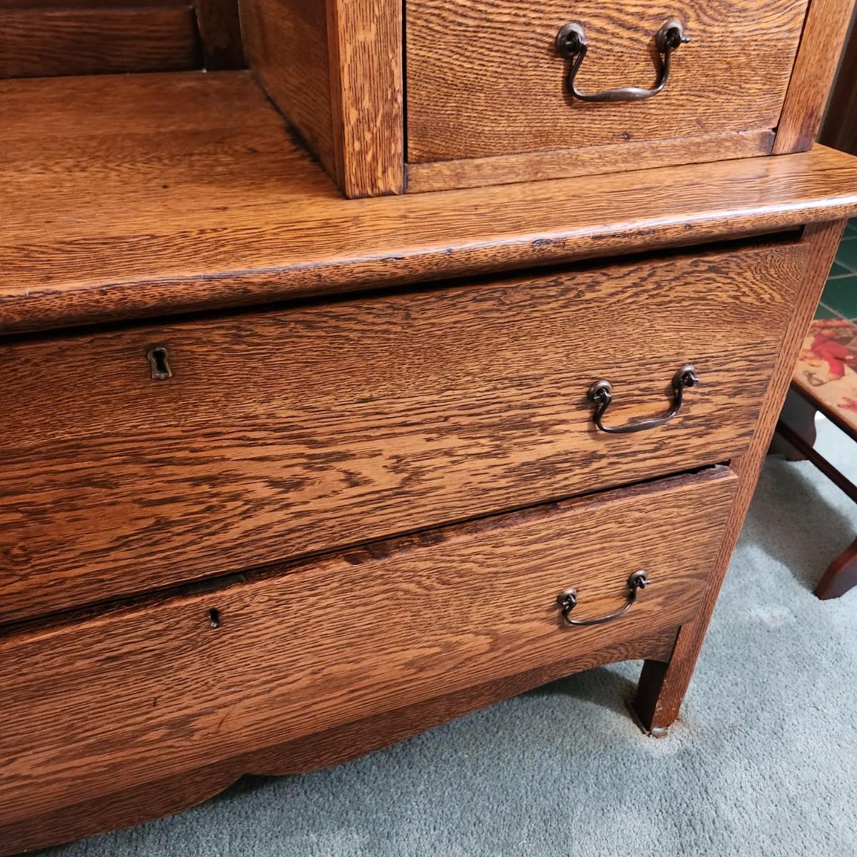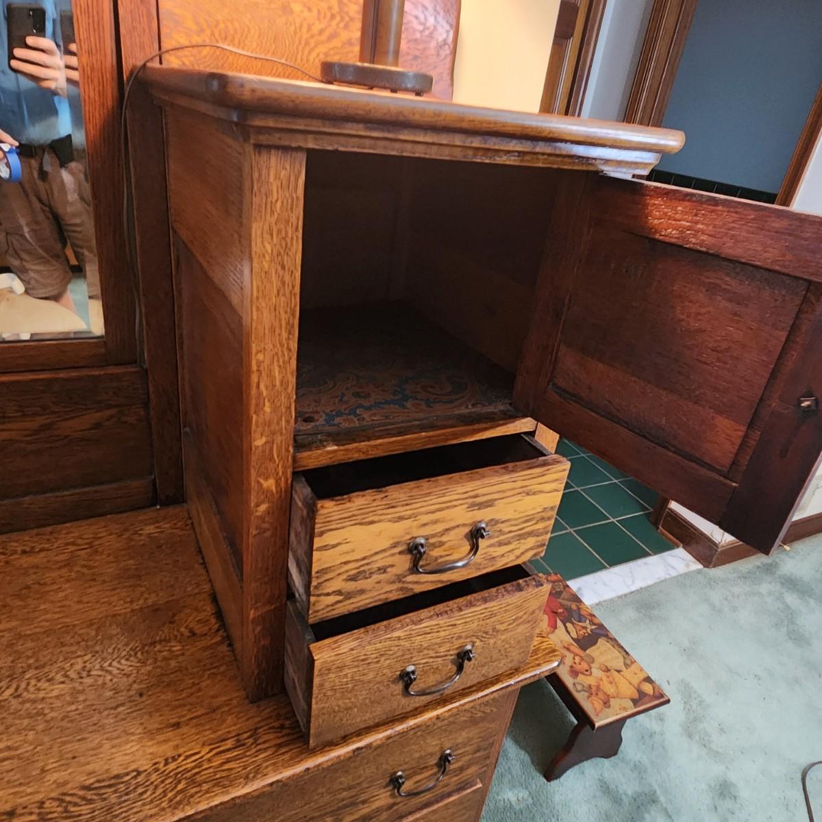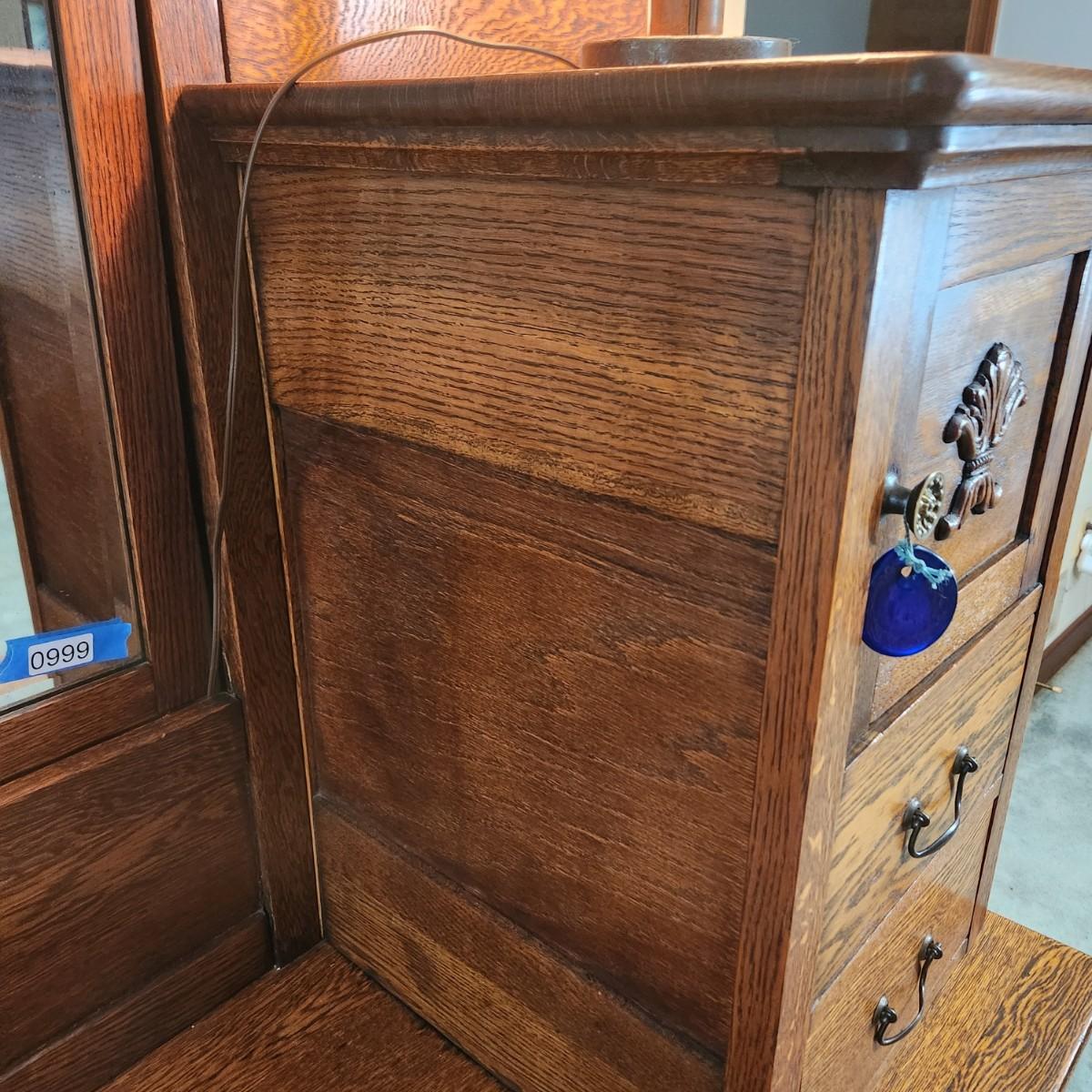 Antique Oak Victorian Side by Side Dresser w Beveled Mirror 44x21x77