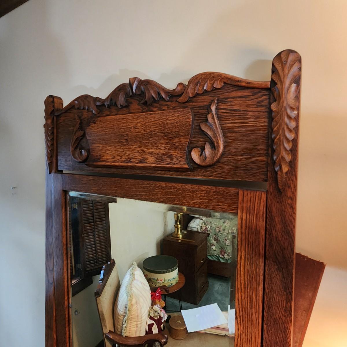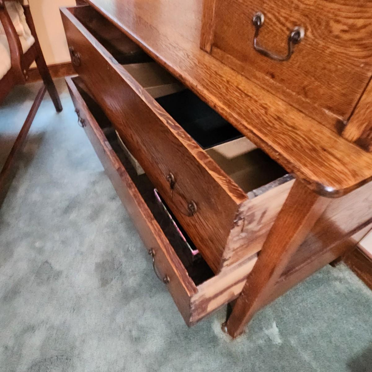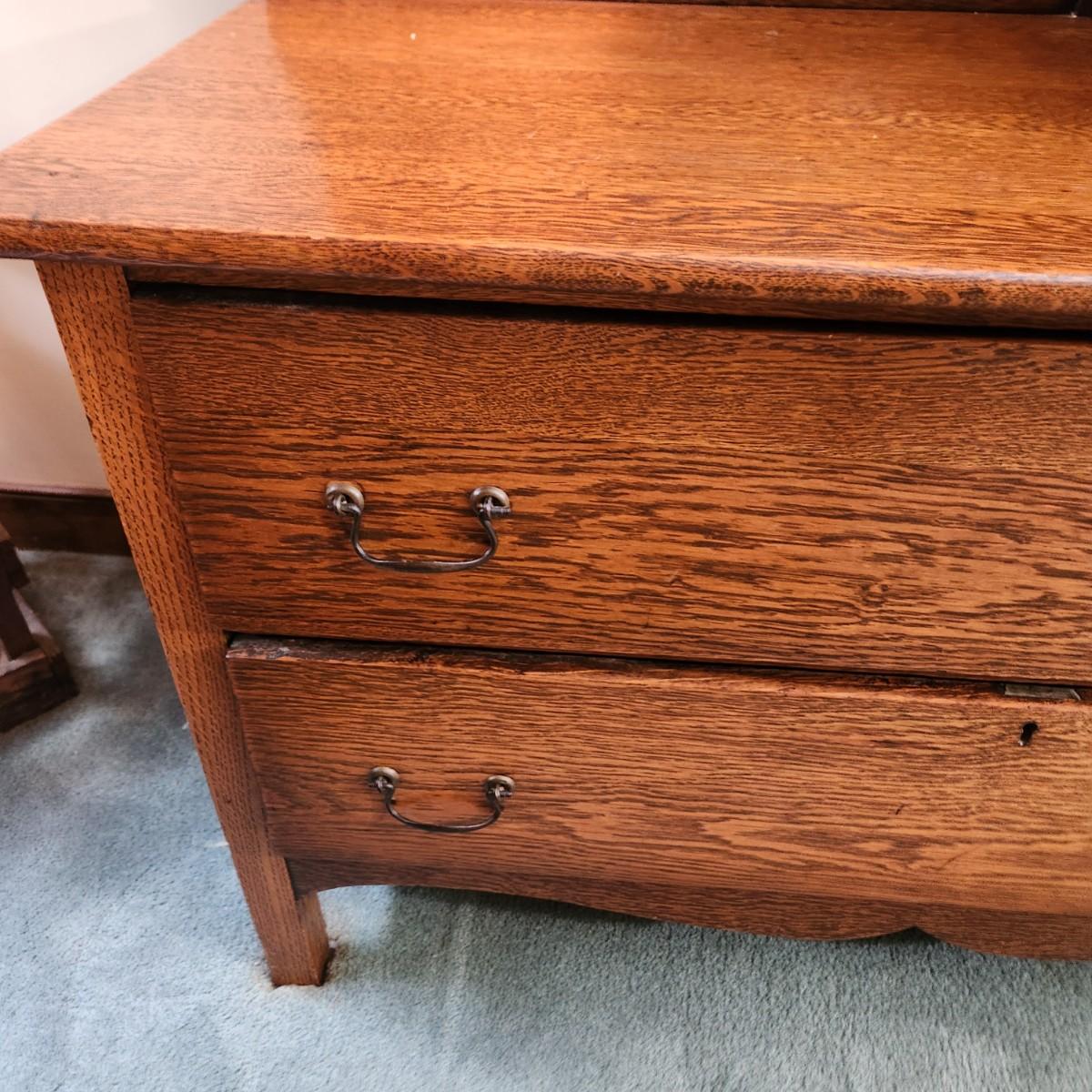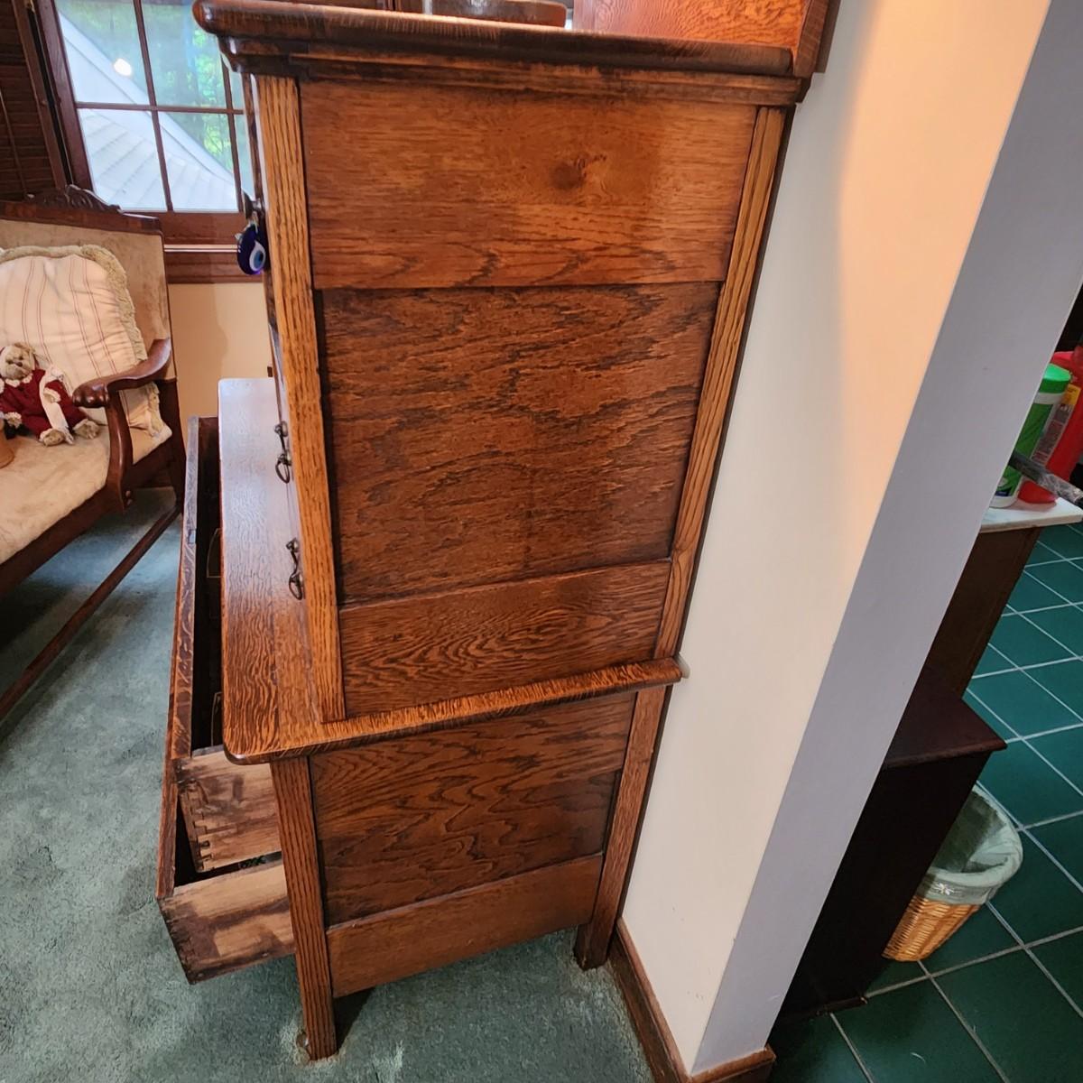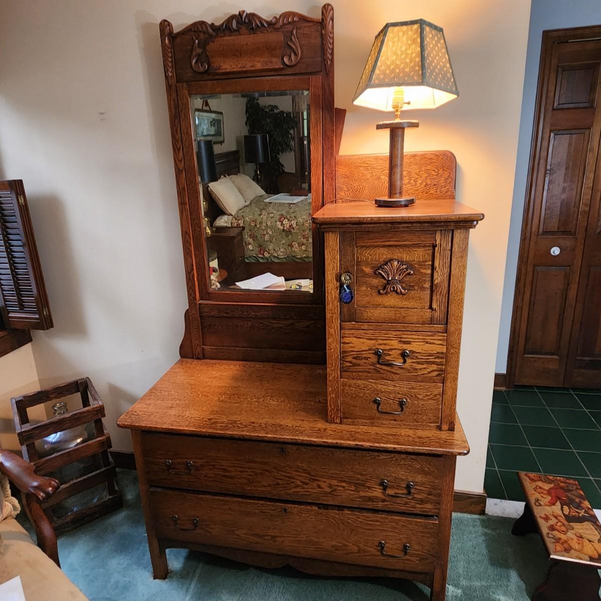 Antique Oak Victorian Side by Side Dresser w Beveled Mirror 44x21x77