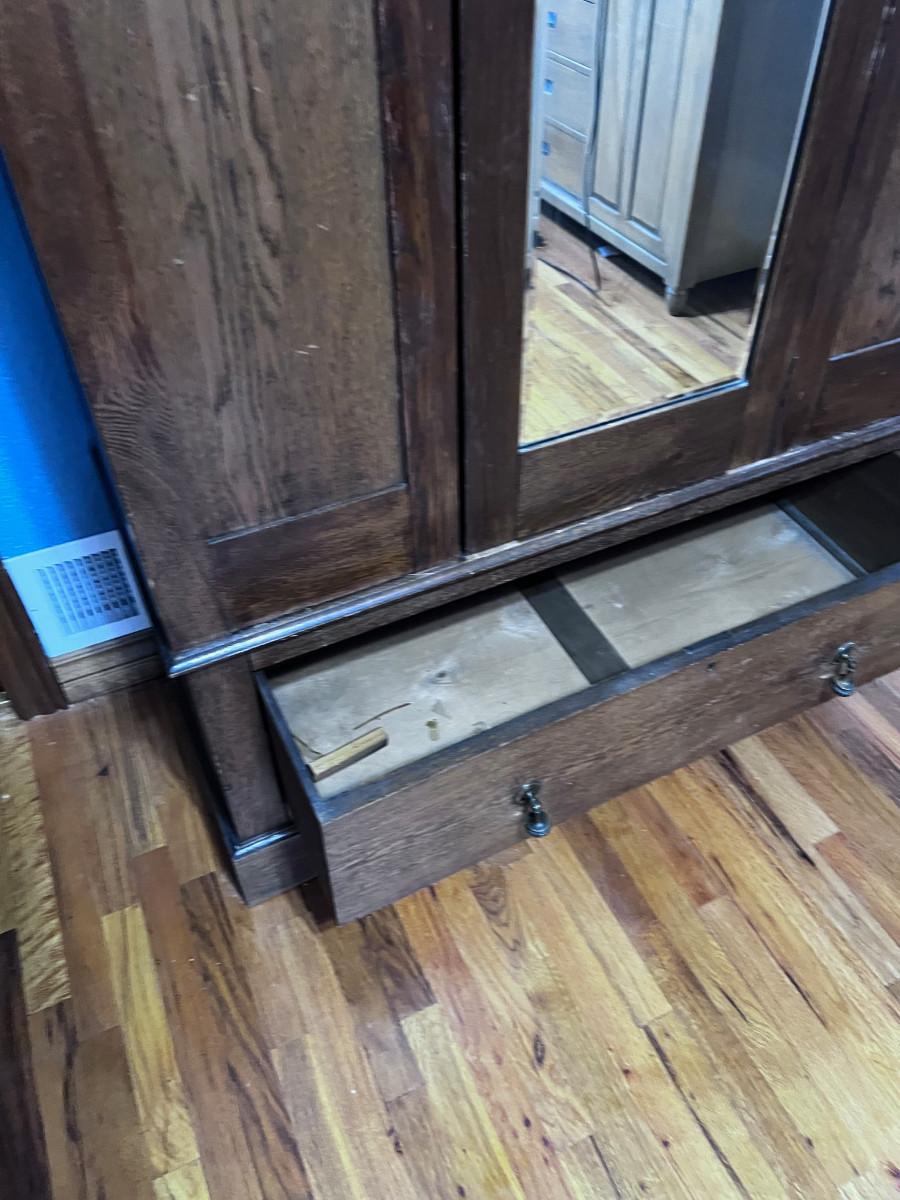 42 x 18x 77" Very Good Condition. Original Finish. Will come apart for easy moving. Bring Help! HEAVY!!!
