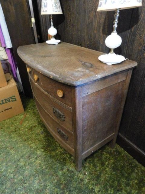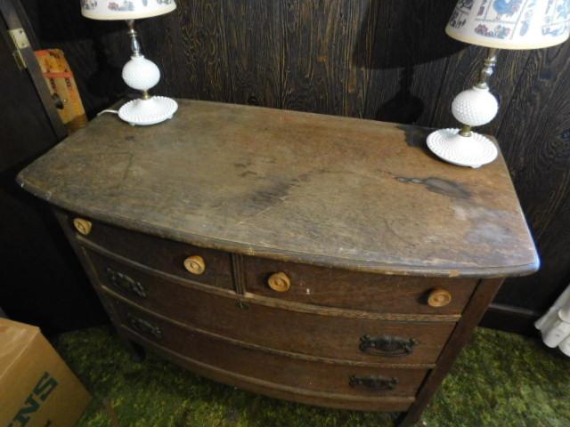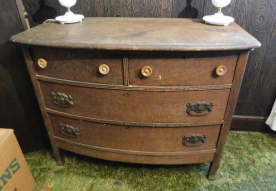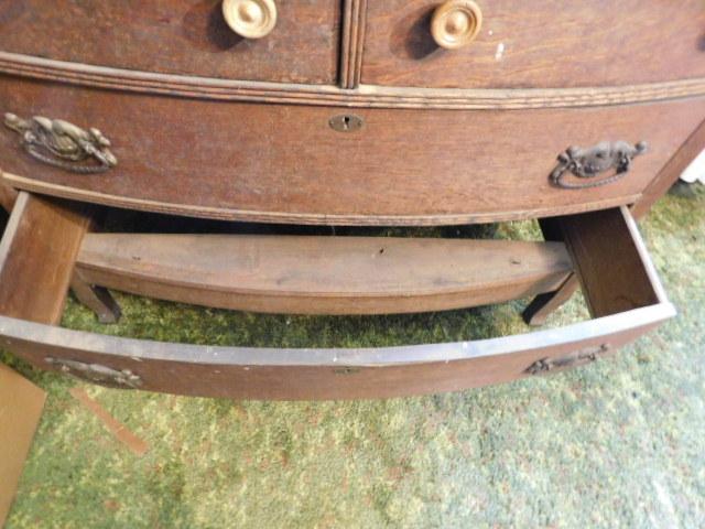 Antique Oak Wood Two over Three Bow Front Dresser 41"x21"x32"