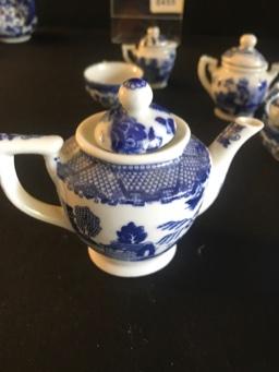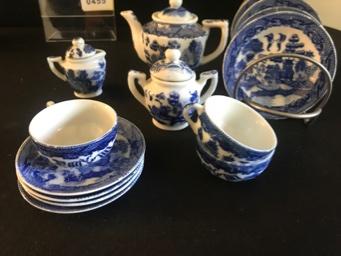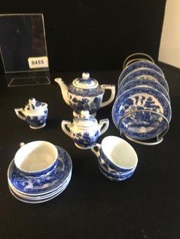 Antique Occupied Japan Childs Tea Set Blue/ White China 14pc
