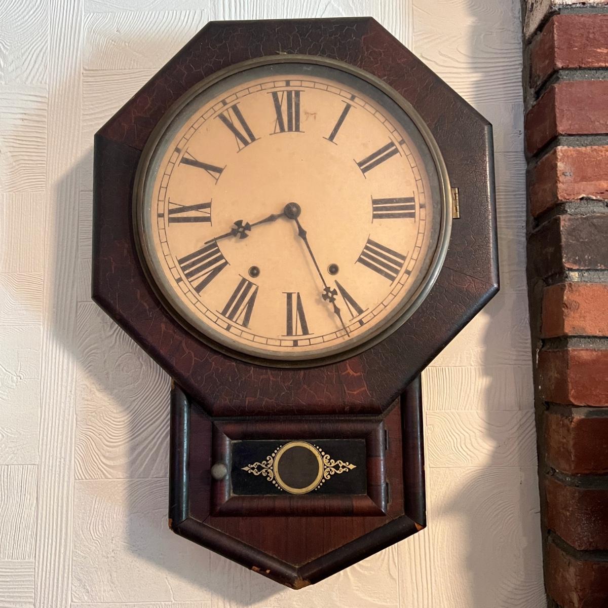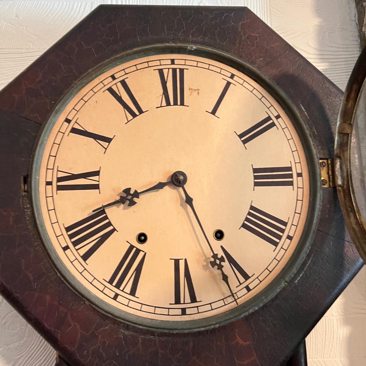 Antique Octagon Eight Day Waterbury CT Wall Clock
