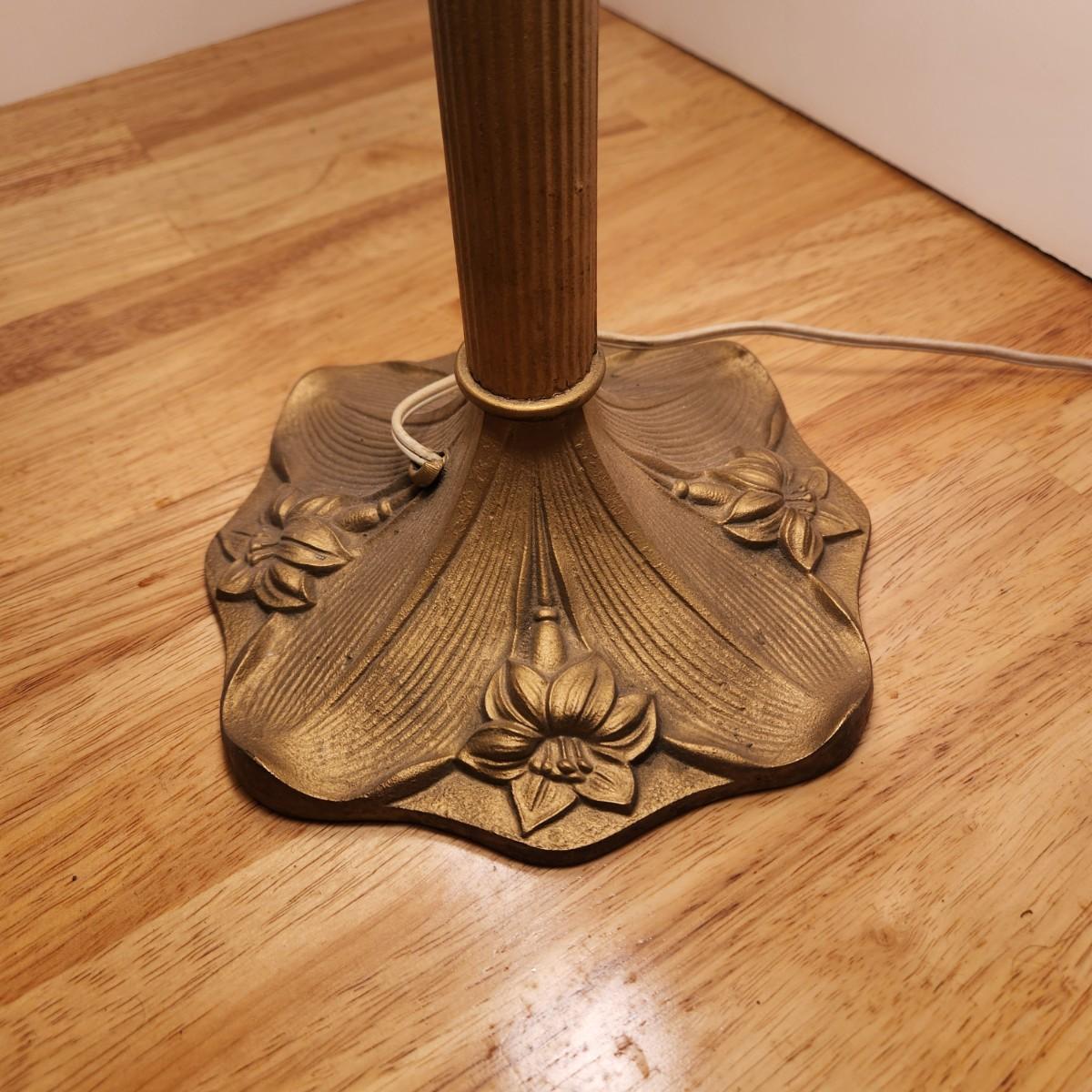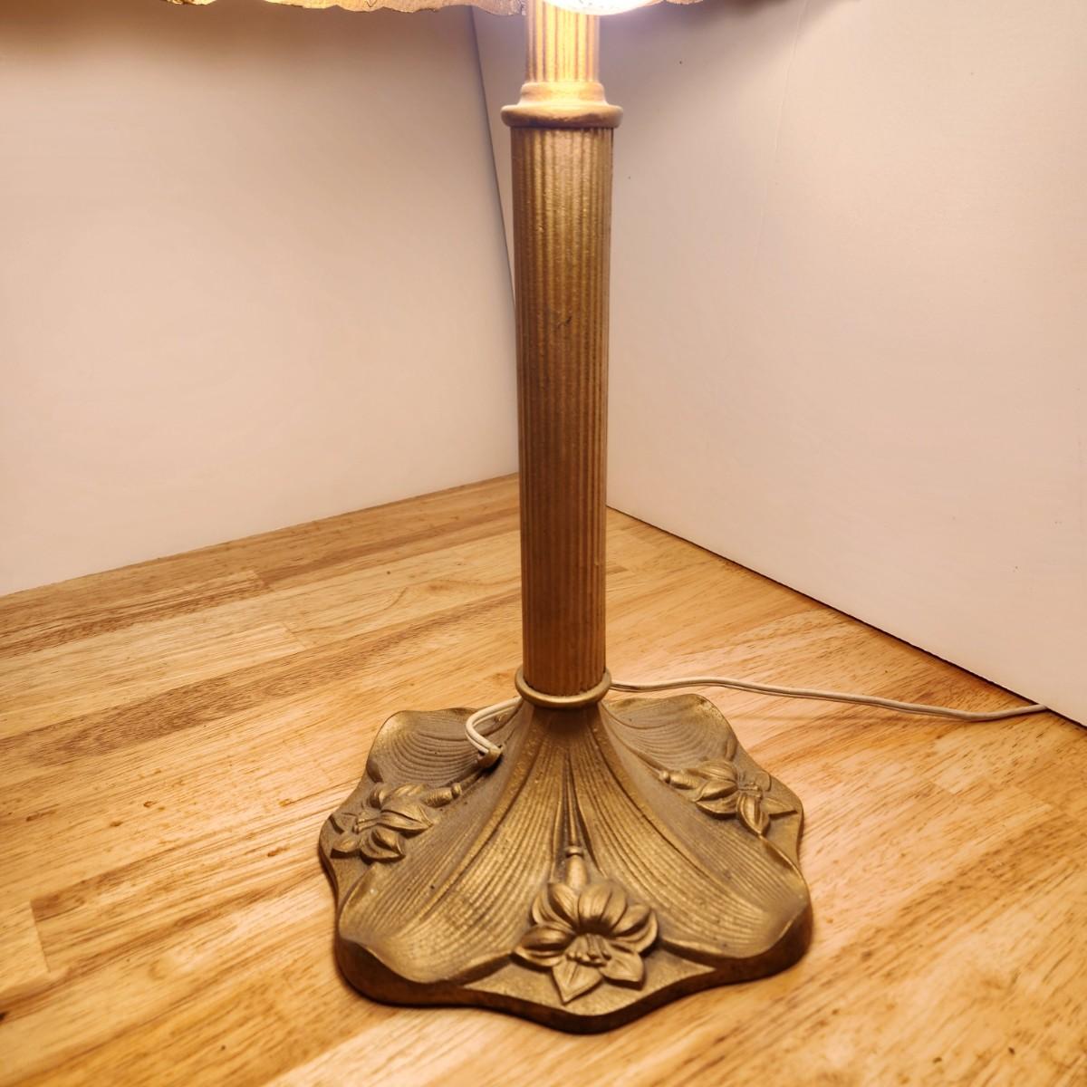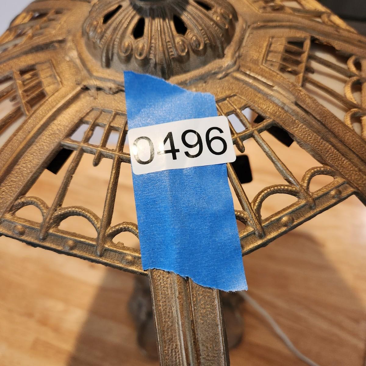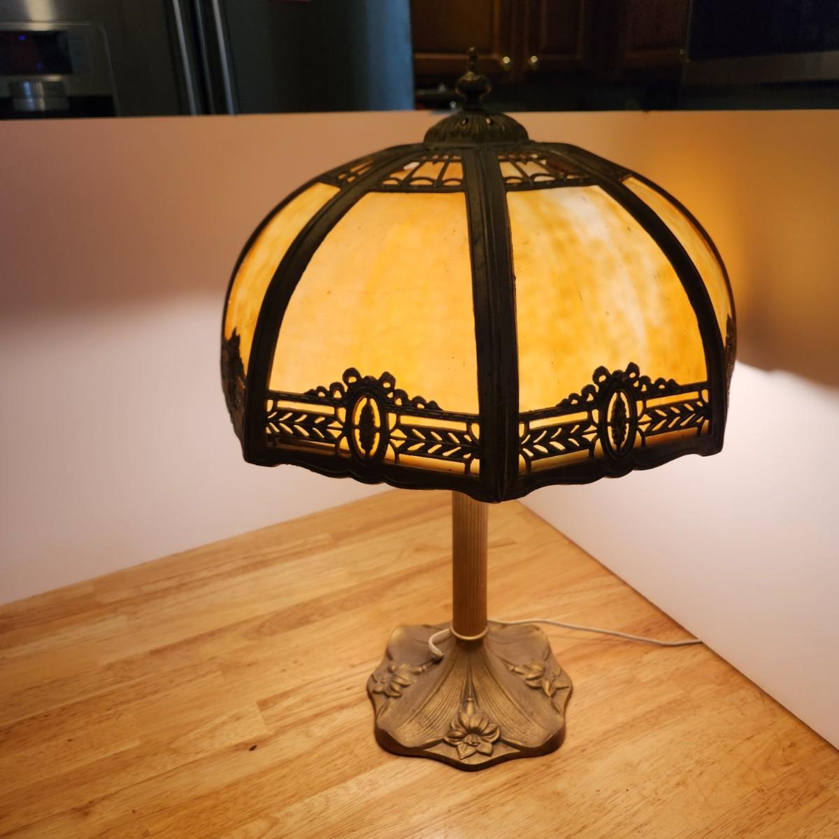 Antique Octagonal Ornate Slag Glass Table Lamp Curved Shade