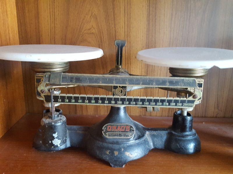Antique Ohaus Balance Scale Porcelain Plates