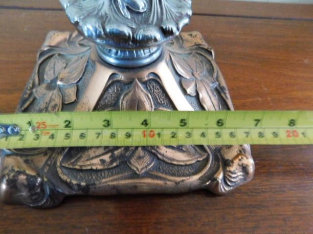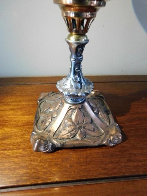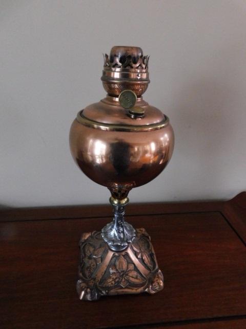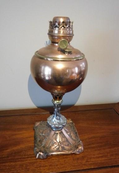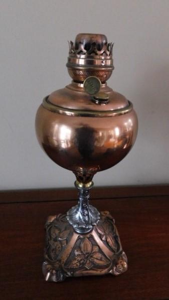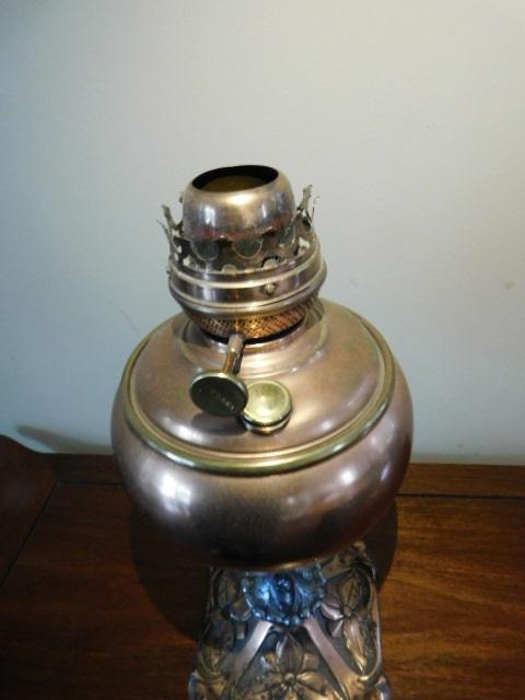 Antique Oil Lamp Copper Finish with Pot Metal Pedestal 17"