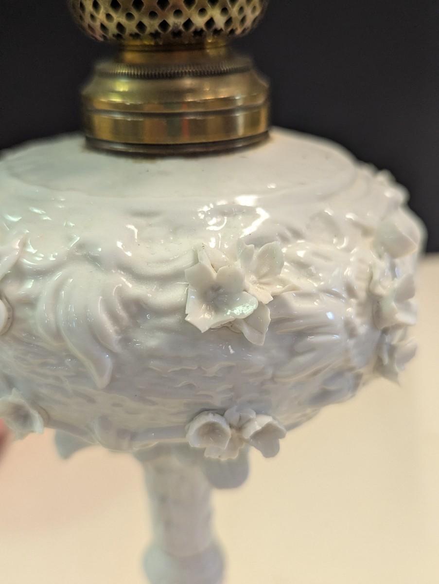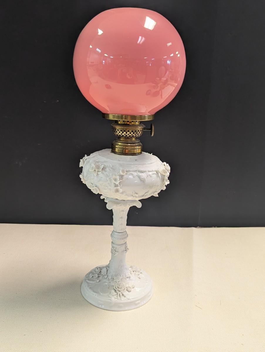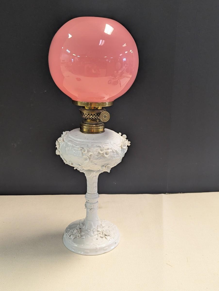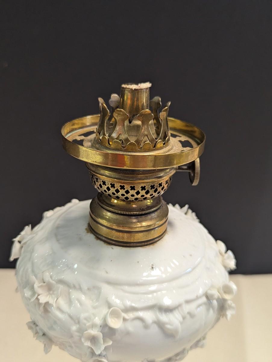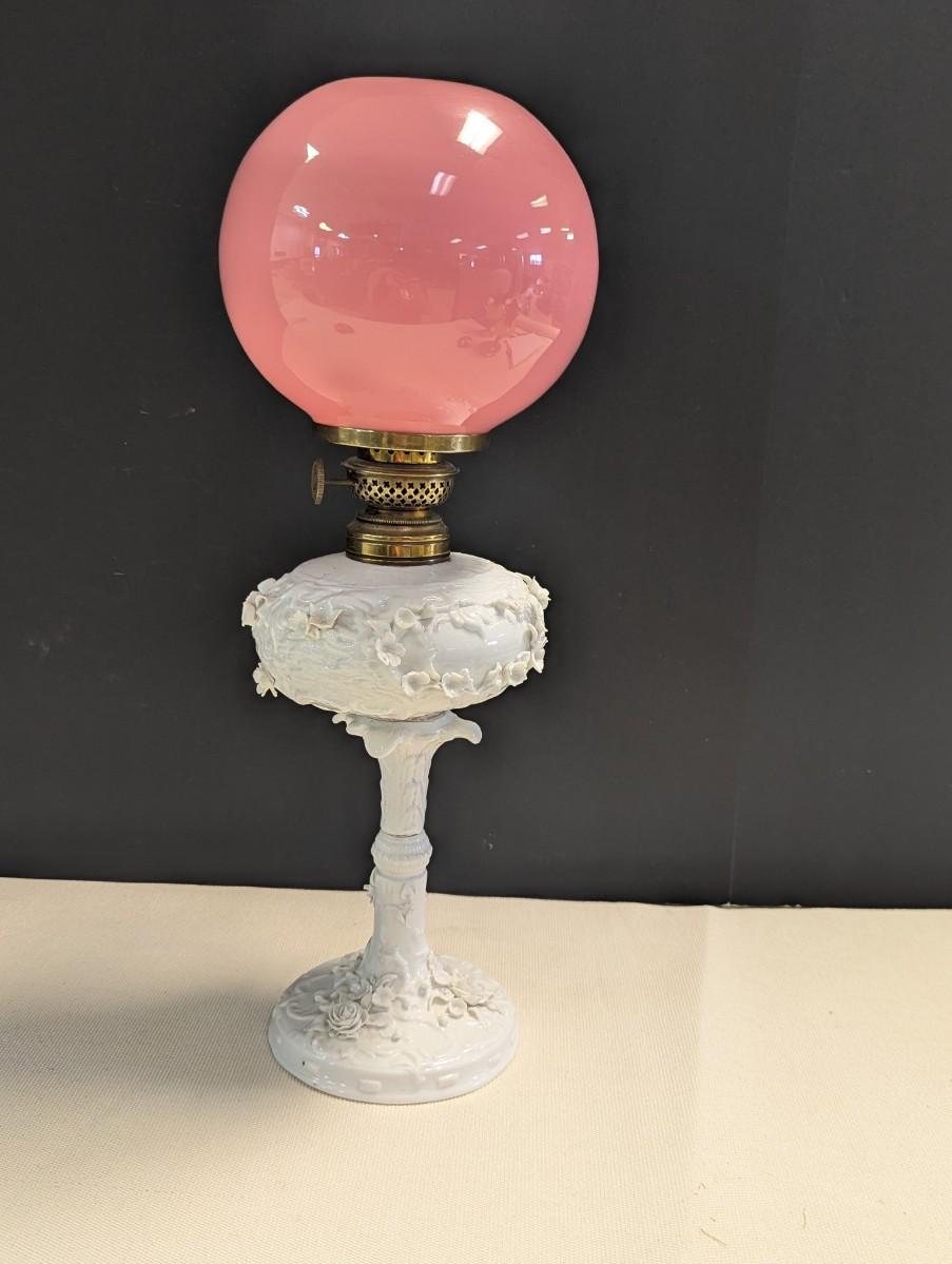 Antique Oil Lamp With Flower Base