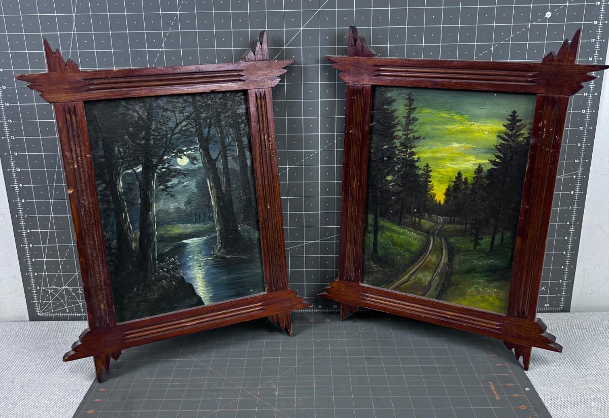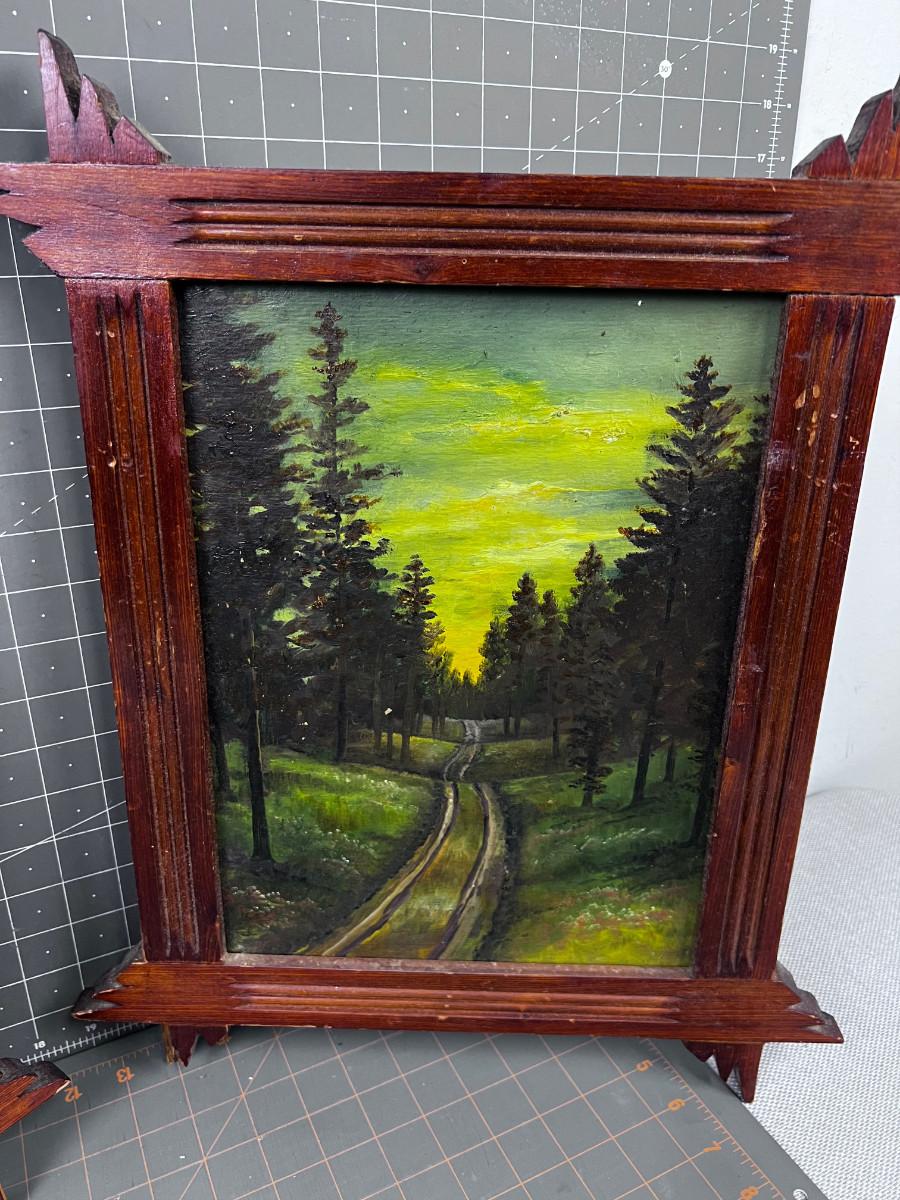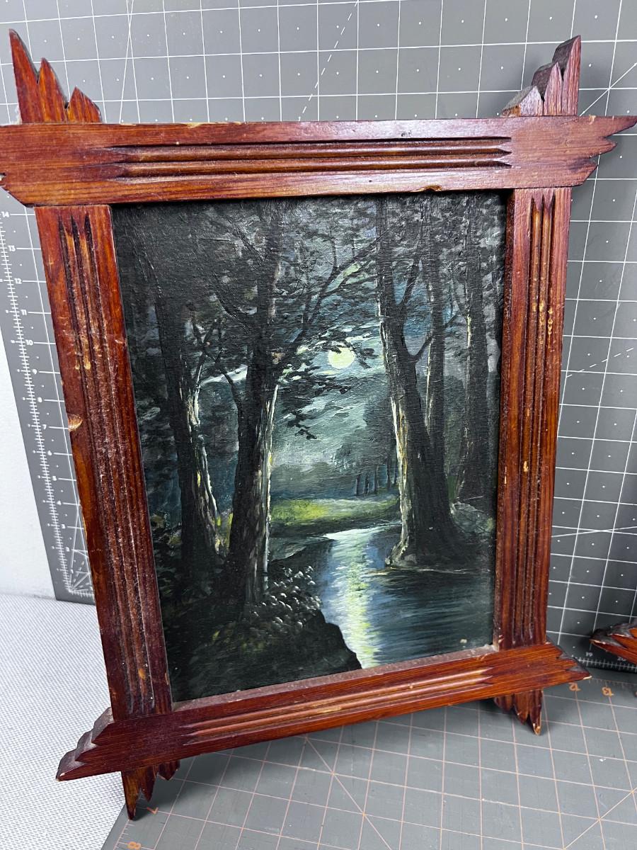 Antique Oil No Signature, NEAT! With Frame; Moon light and Dawn Pathway