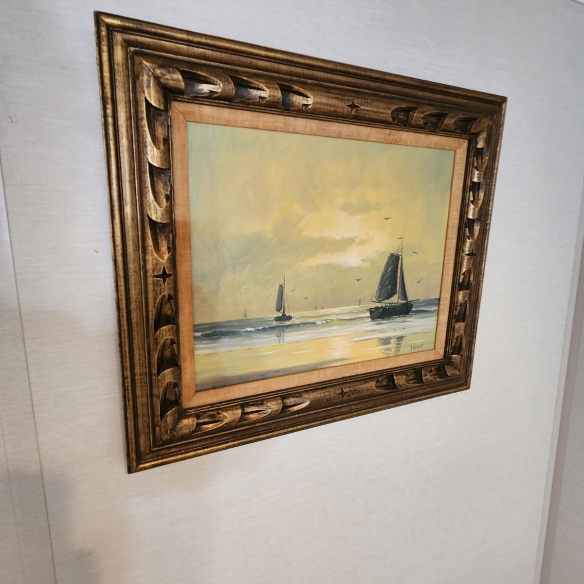 Antique Oil on Canvas R. Schmidt Marine Ocean Sail Boats 27x23
