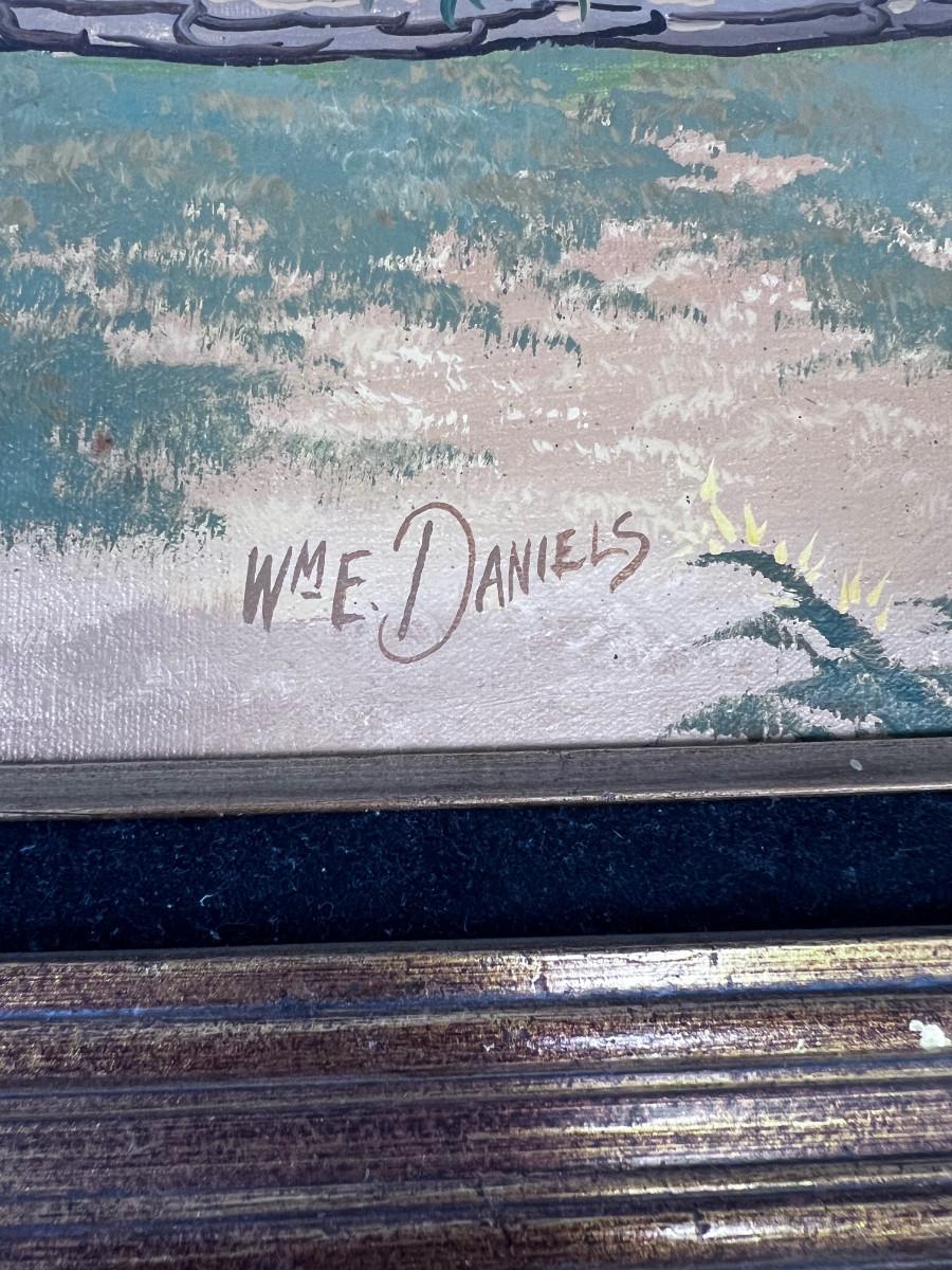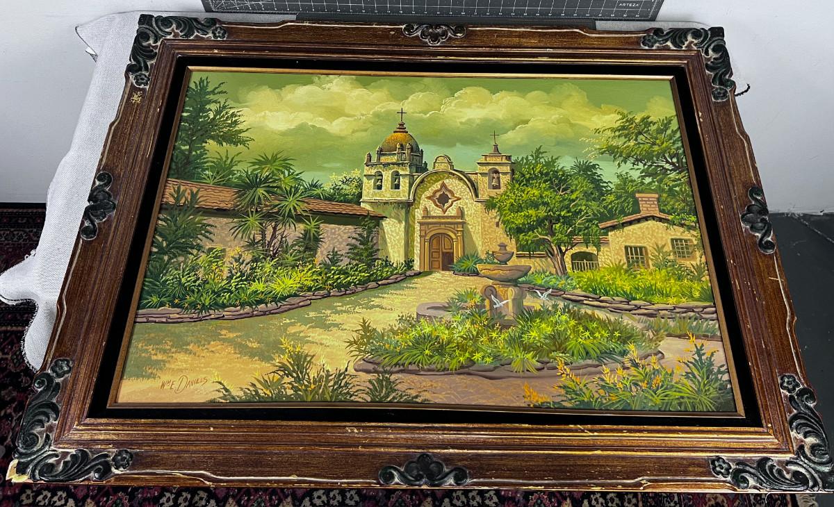 By William E. Daniels, Good Condition. Measures 24 X36" Carmel Mission Framed. Boxing Fee will apply, Plus Shipping charges.