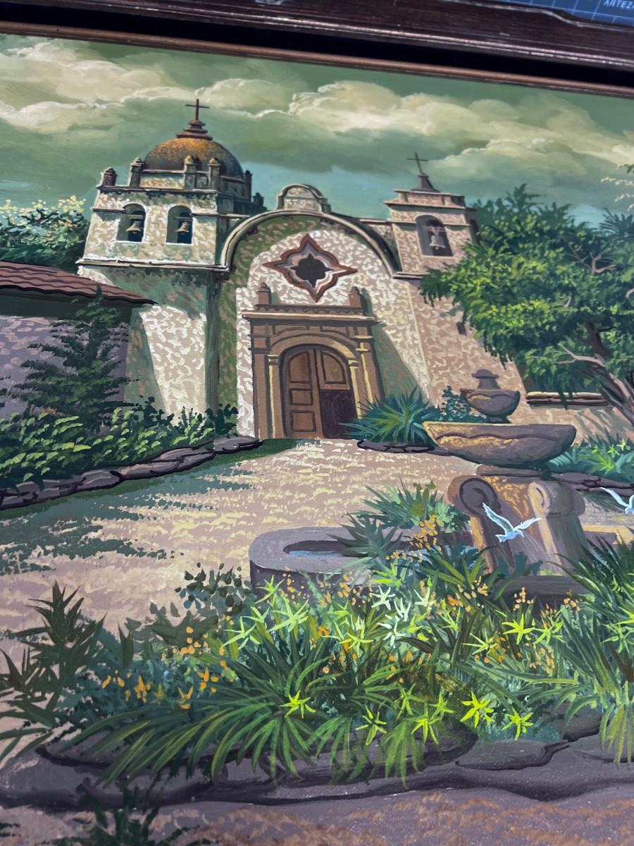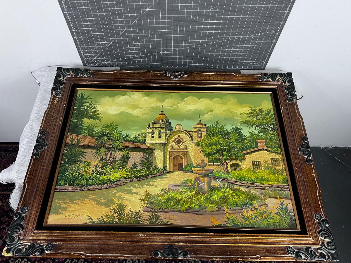 Antique Oil Painting of Spanish Mission Framed