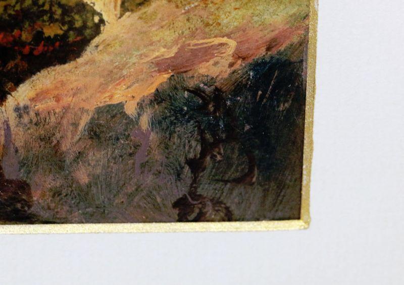 Antique original oil painting on canvas, signed by artist, framed into golden wood frame with glass front. Artwork - 9" x 22", frame - 22.5" x 37.5". Frame has some spots with missing ornaments, painting in excellent condition.