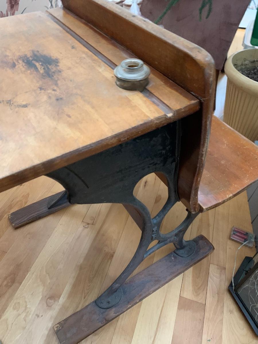 Antique One Room Schoolhouse Desk w/ Ink Well