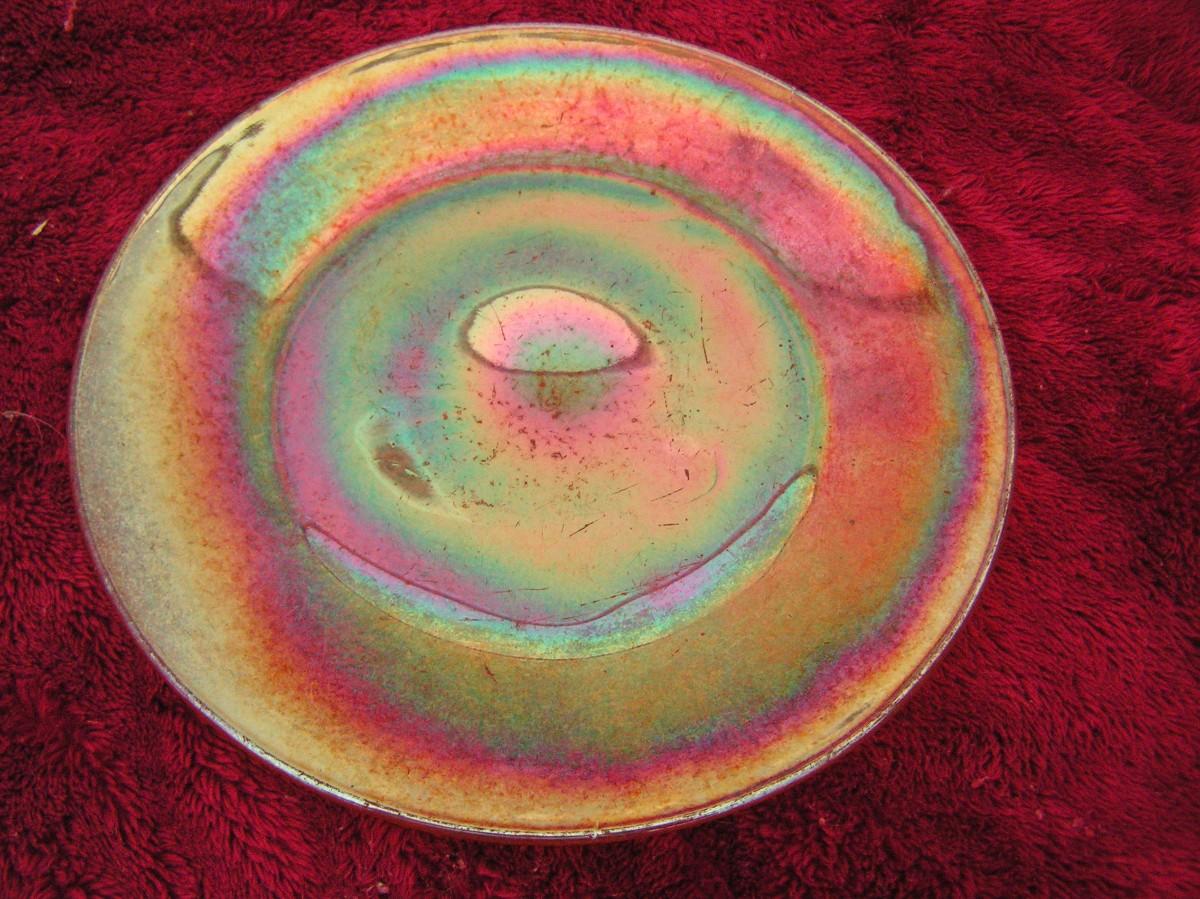 Antique or vintage salad plate, marigold iridescent carnival glass,