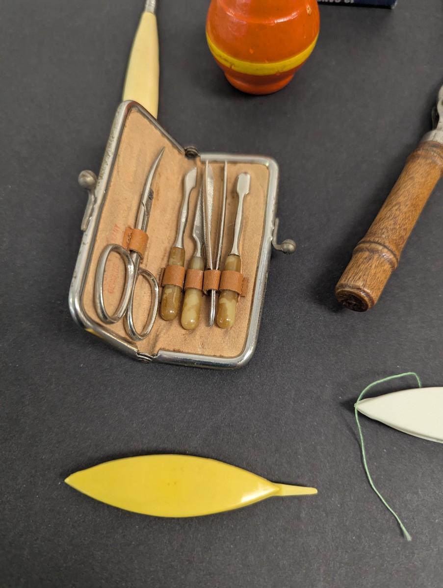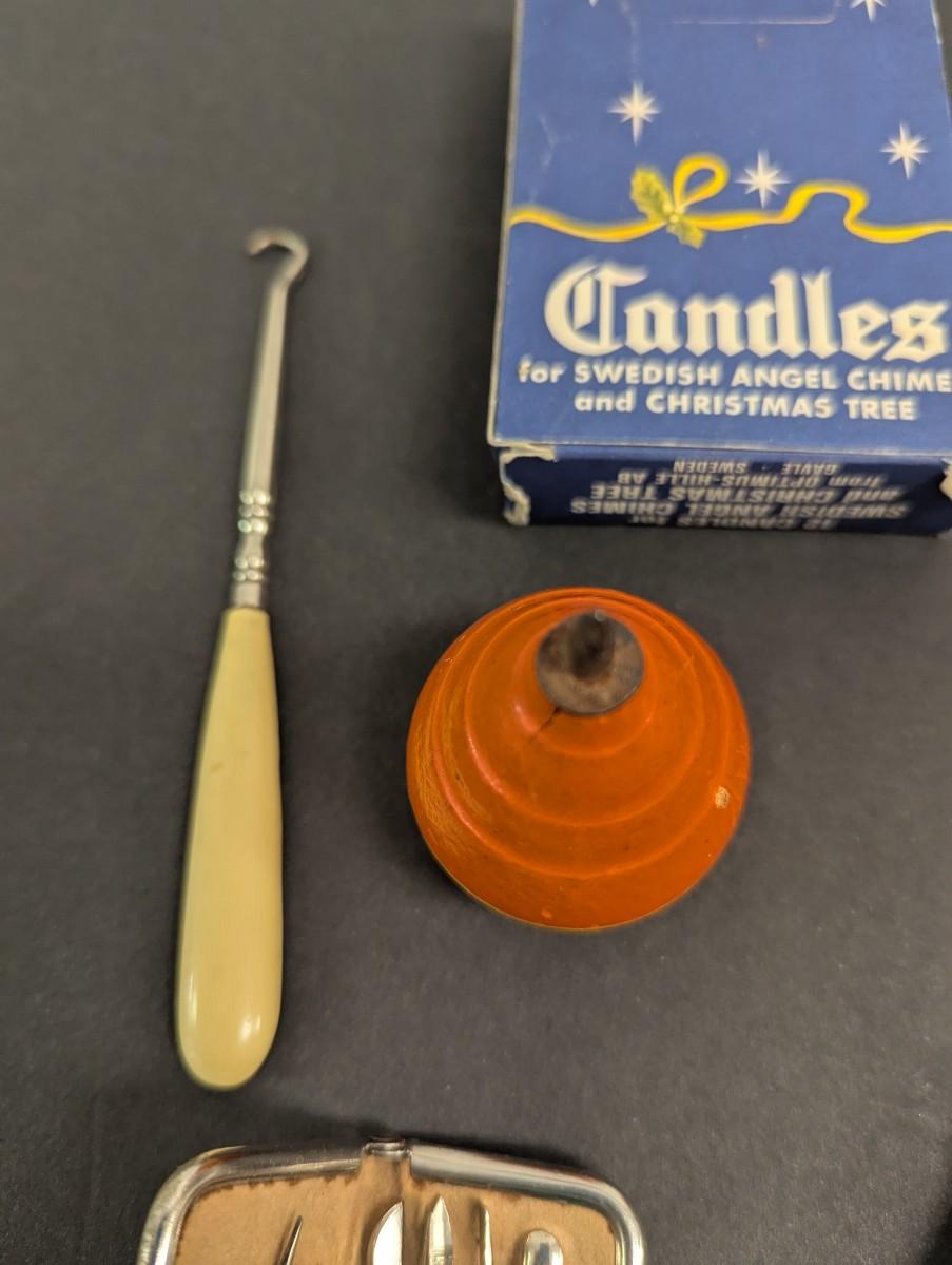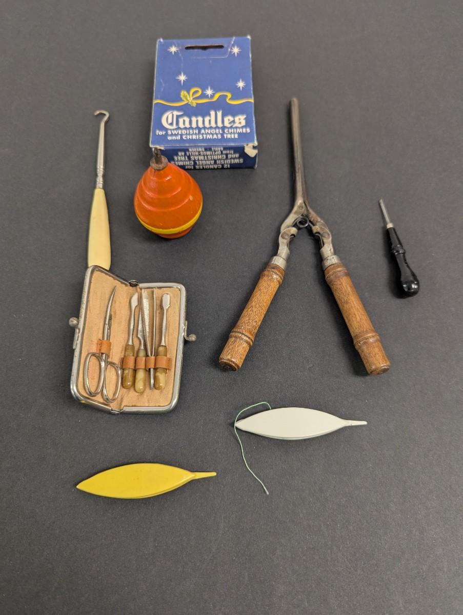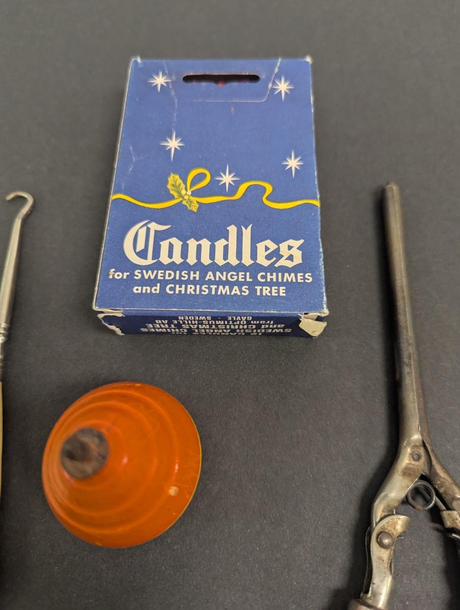 Antique Orange Top Candles Hair Curling Device Manicure Kit