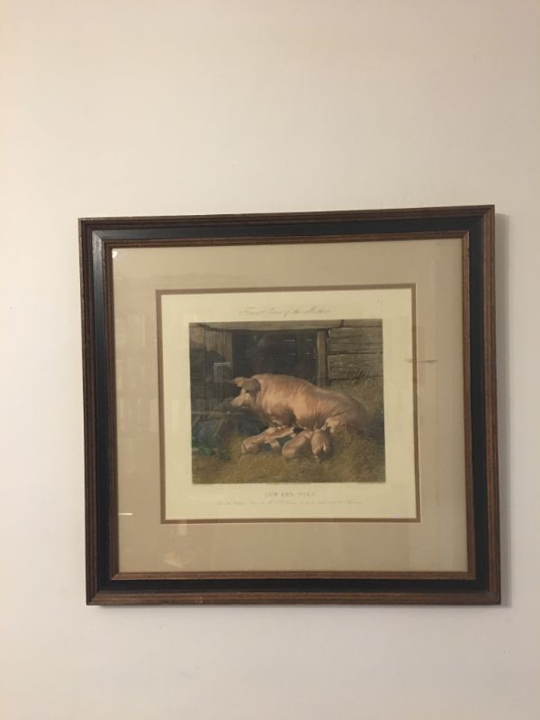 William Summers (British, 19th century) and John Harris II (British, 19th century), "Sow and Pigs," from "Feres's Series of the Mothers," engraving with hand-coloring, after a painting by John Frederick Herring the Elder (British, 1795-1865), overall (with frame): 23"h x 24"w