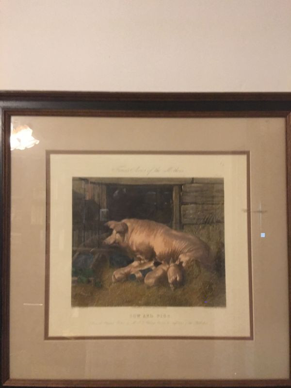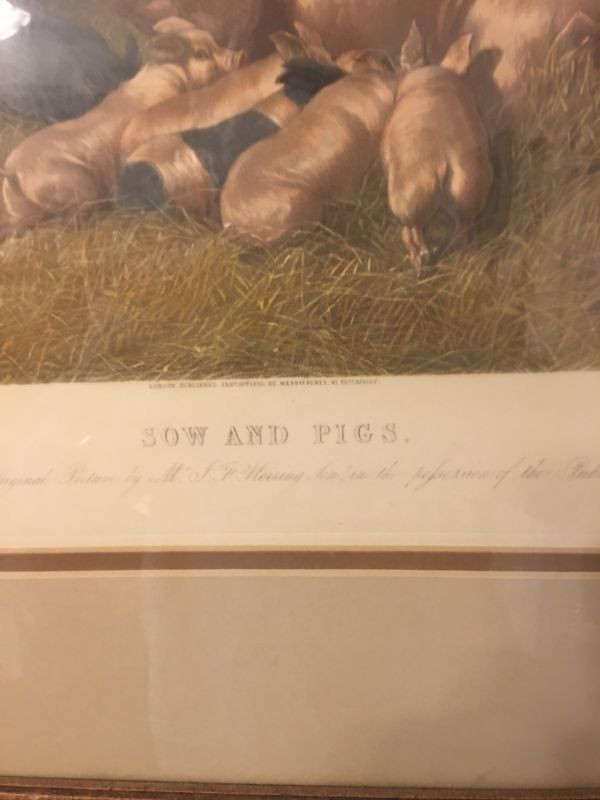 Antique original hand colored engraving John Frederick Herring the Elder, Sow and Pigs