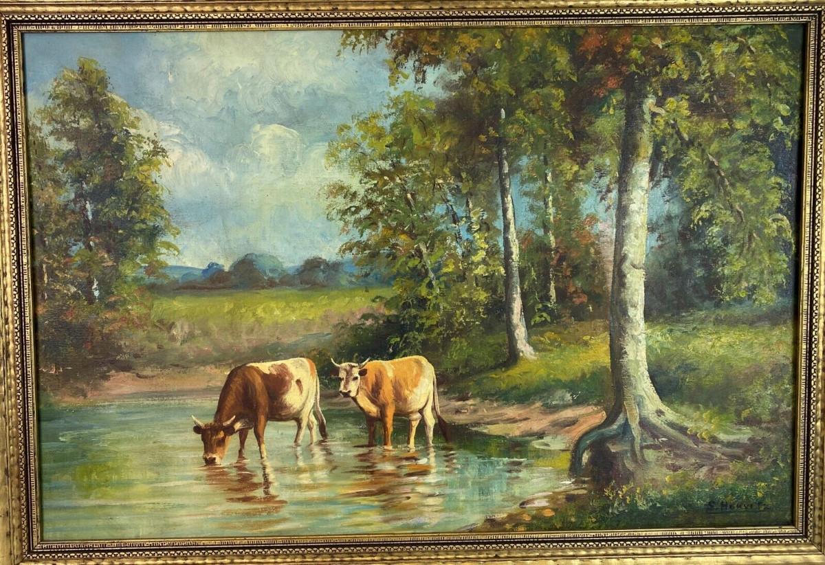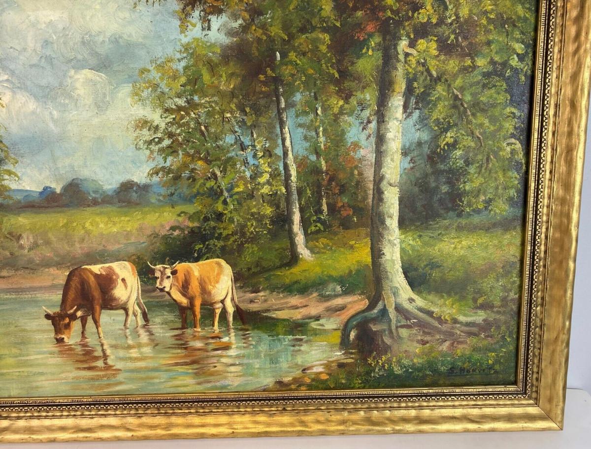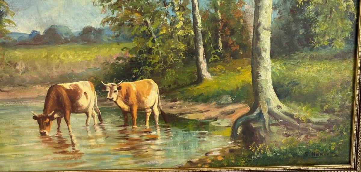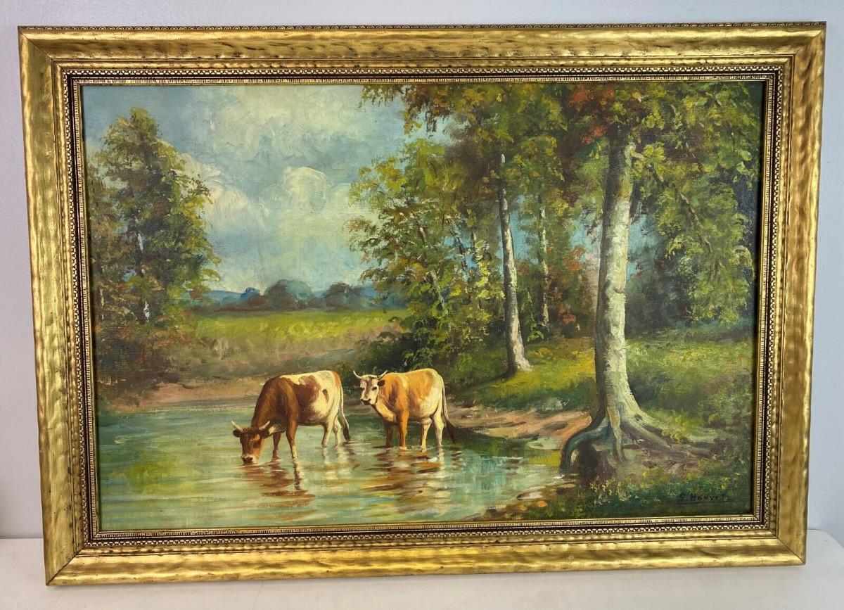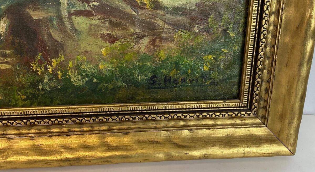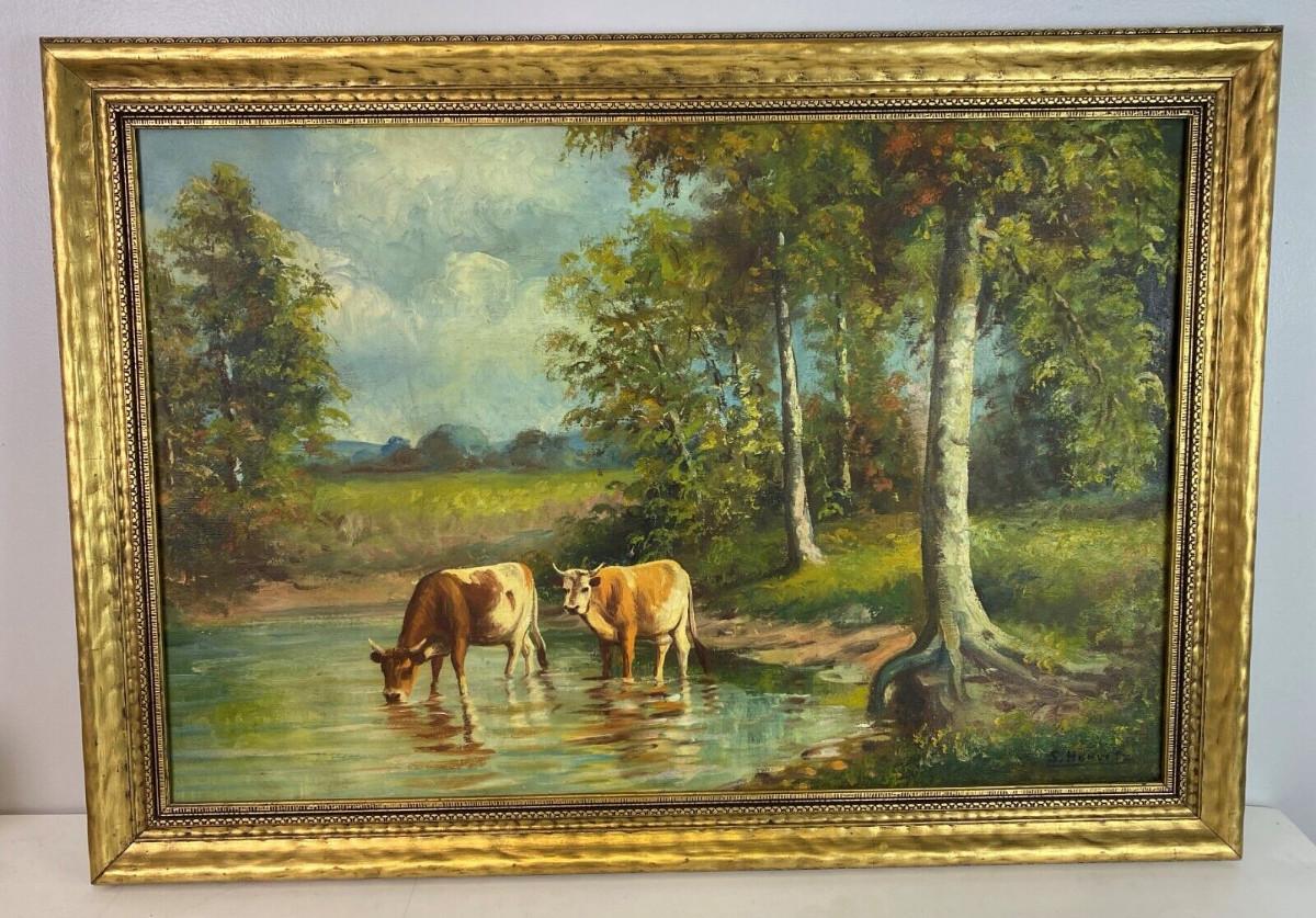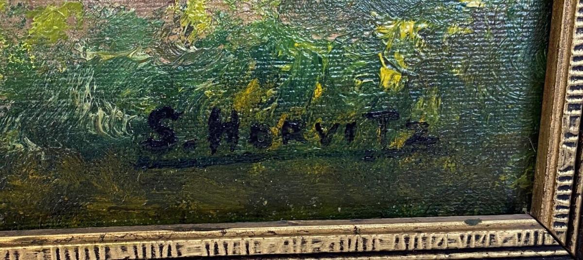 In excellent condition here is an original pastoral landscape oil on canvas signed S. HORVITZ possibly a New York artist from the past...framing and canvas definitely show age...The gilt frame is 34.5 x 24.5 inches..the image is 30 x 20 inches...Estate art.