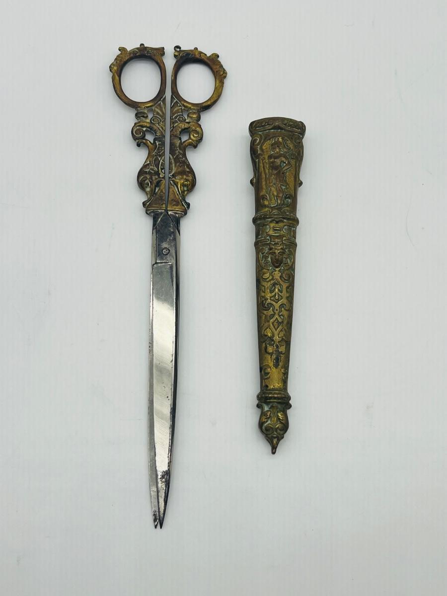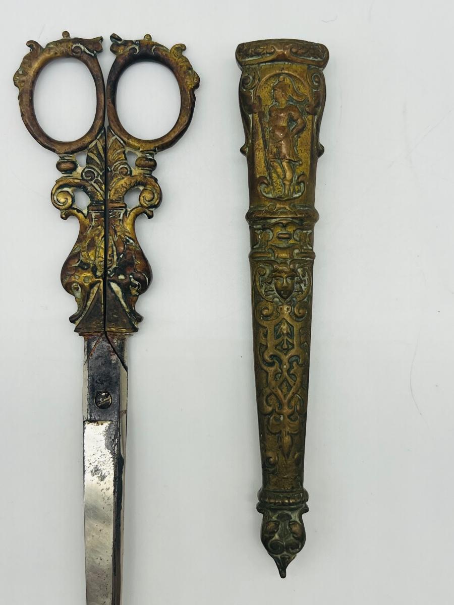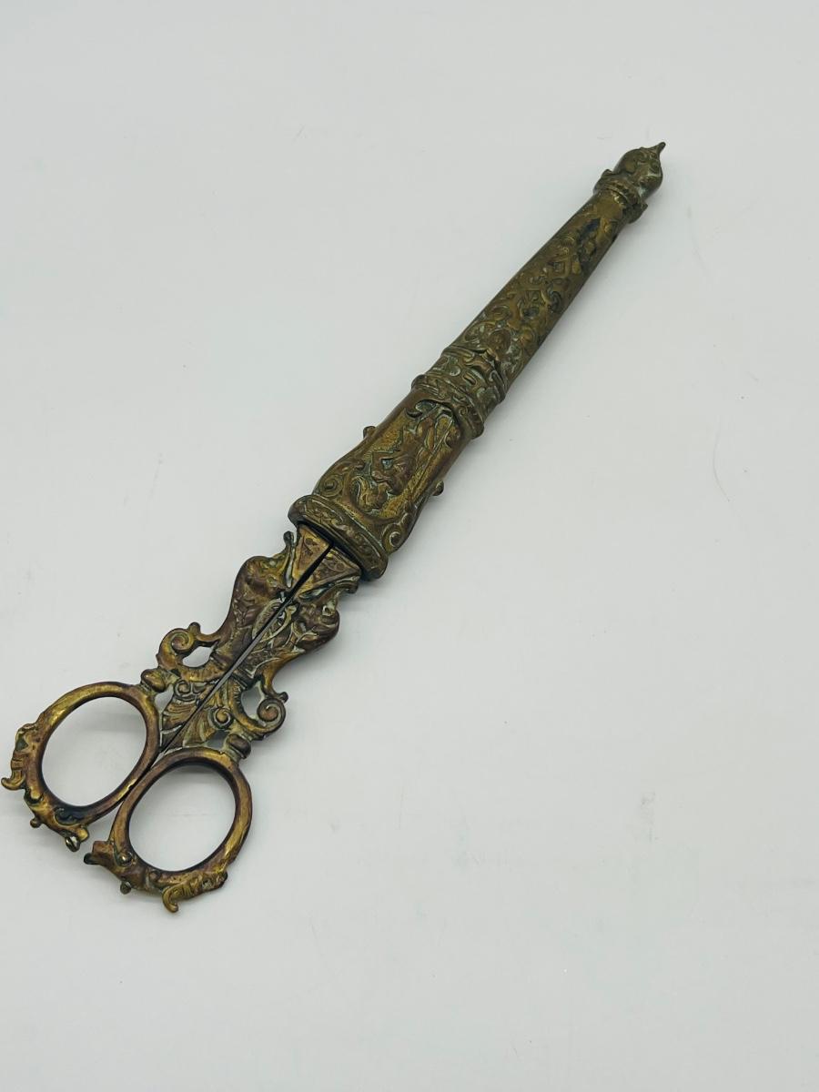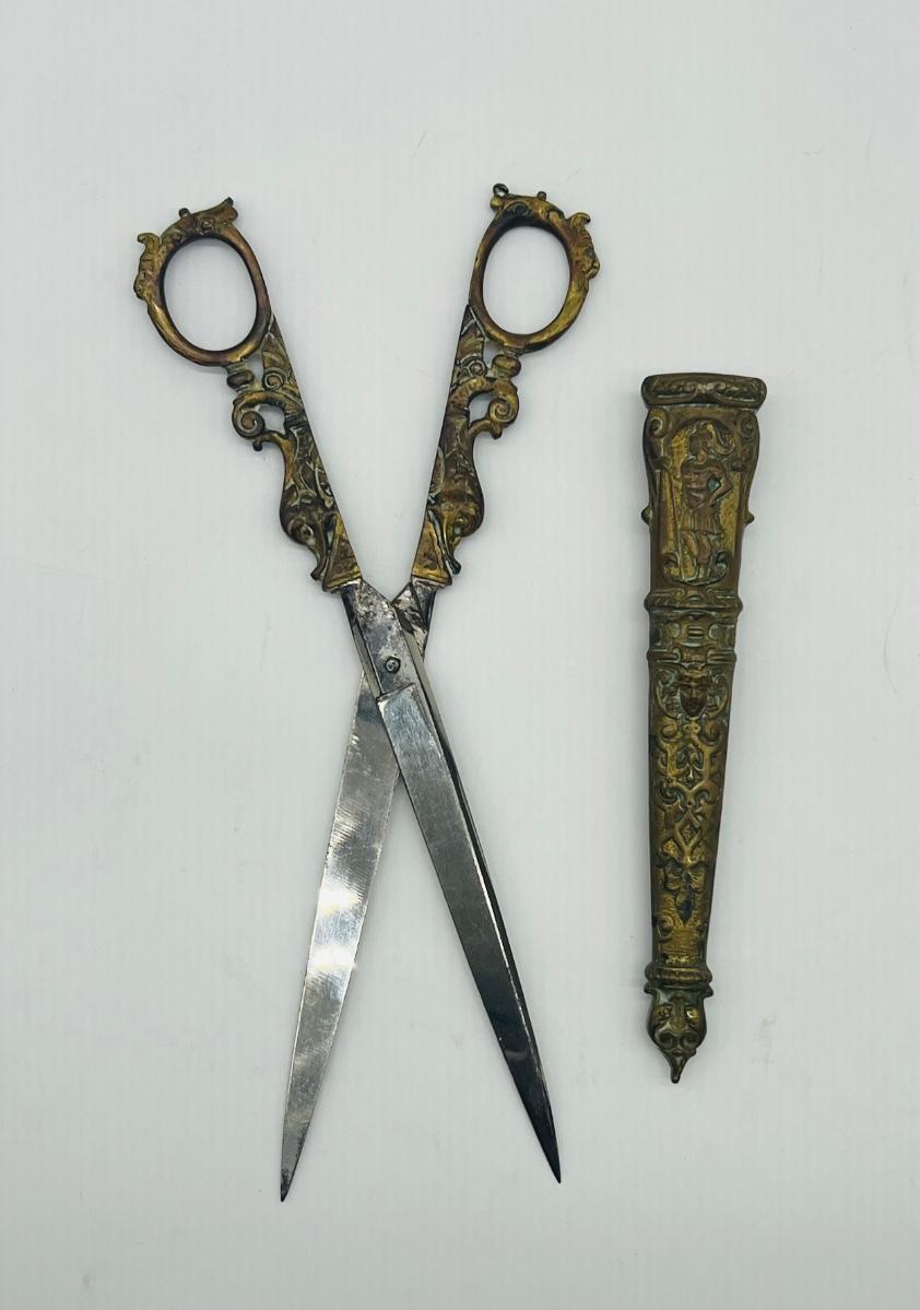 Antique Ornate Brass Scissors. Opens and closes easily. Measures