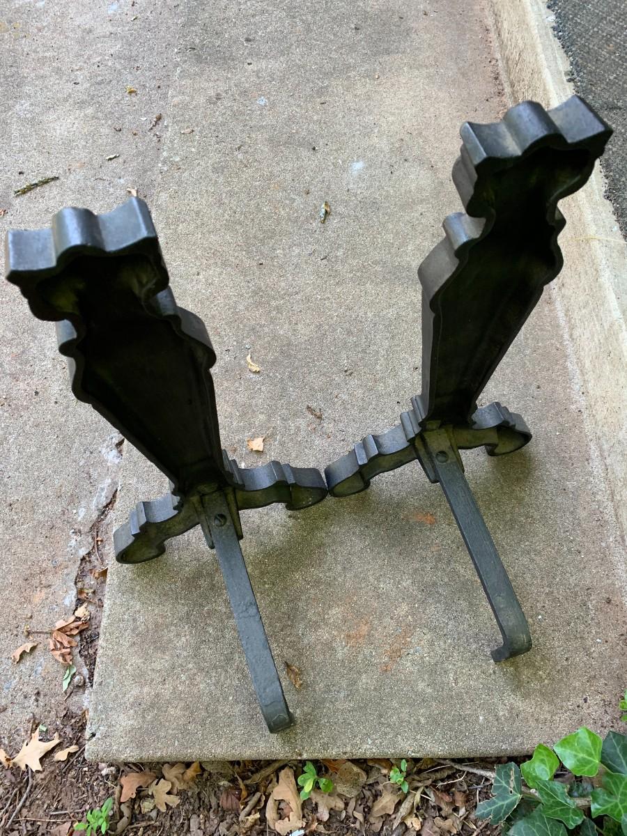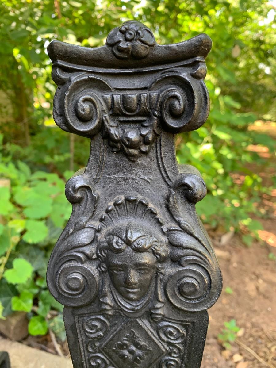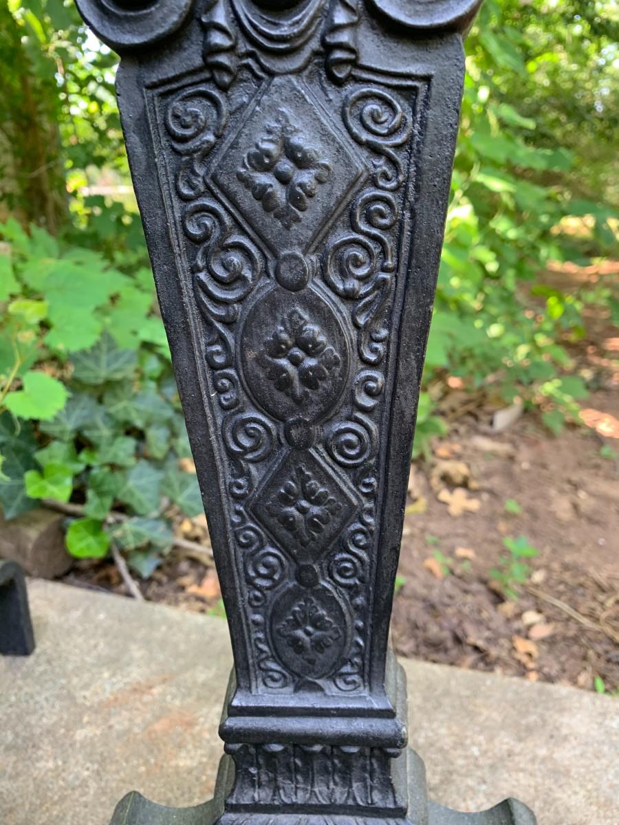 Antique Ornate Cast Iron Fireplace Andirons - excellent condition