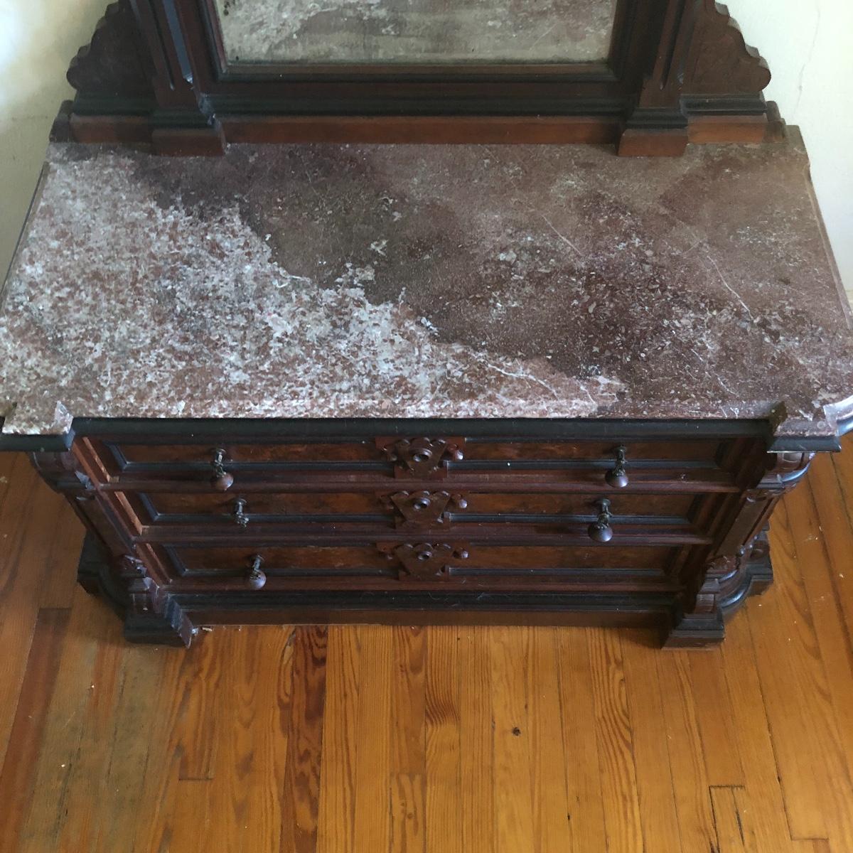 Antique Ornate Marble Topped Dresser W/Mirror (M-RG)
