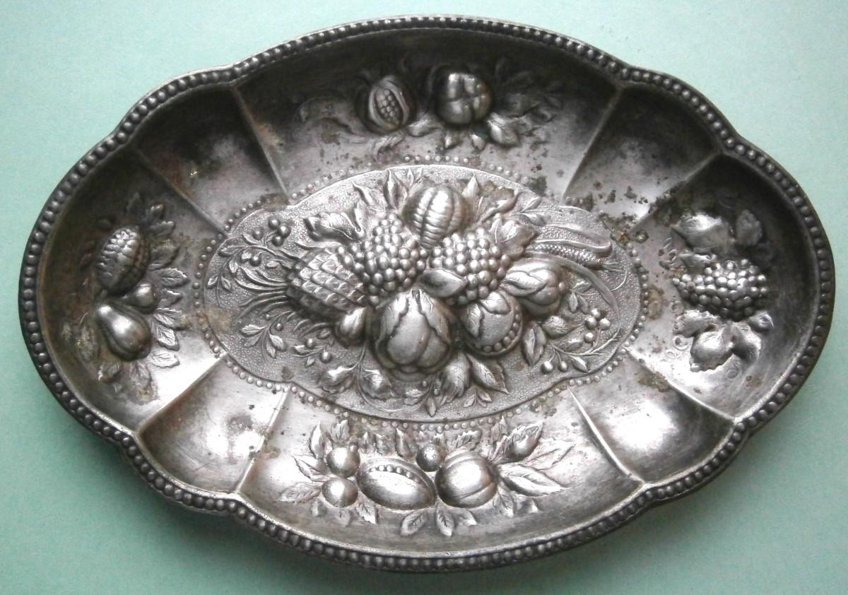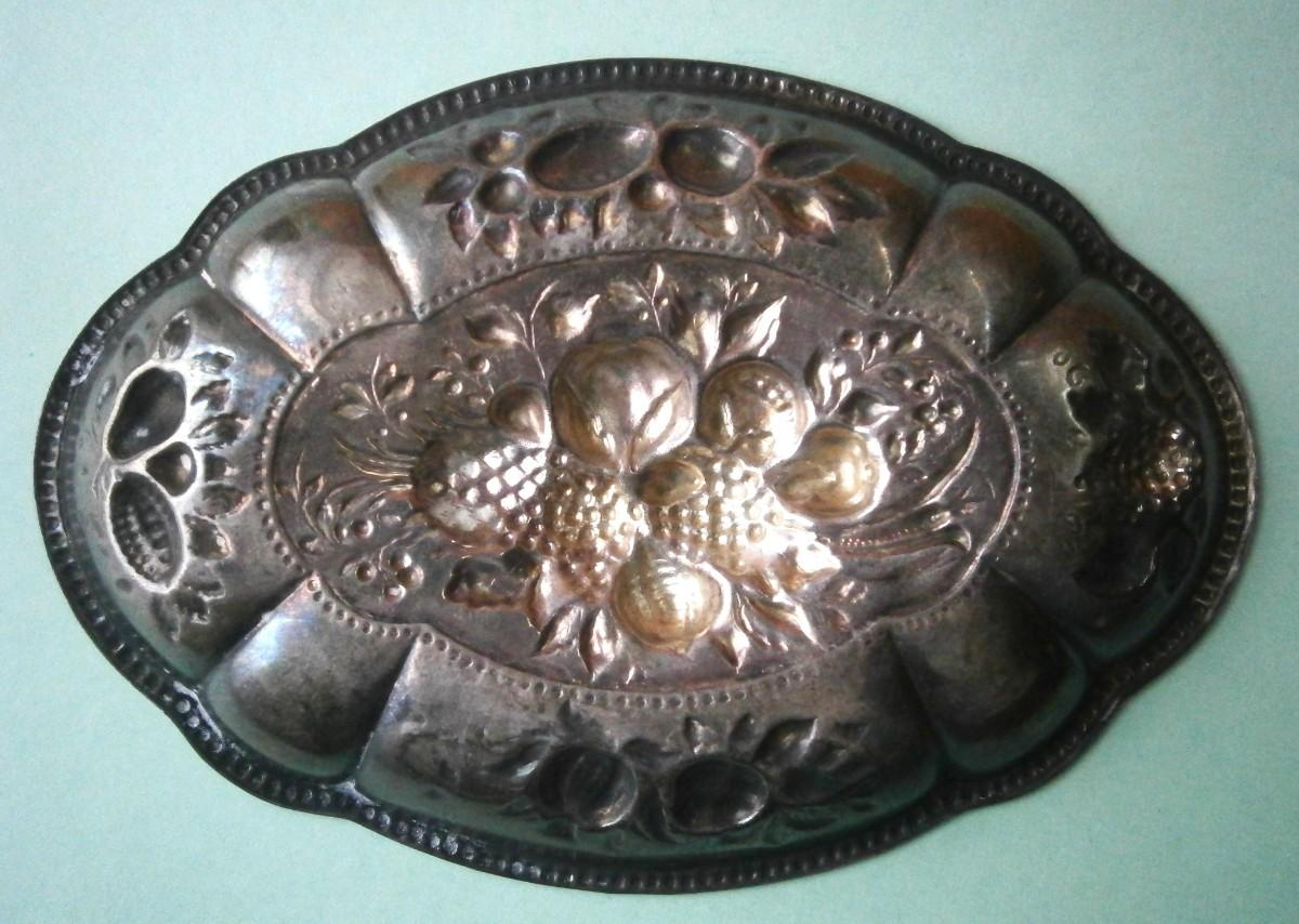 Antique Ornate Pin Tray, silverplate (not markings), 4 5/8 x 3 1/4 in.