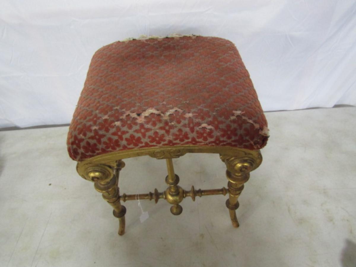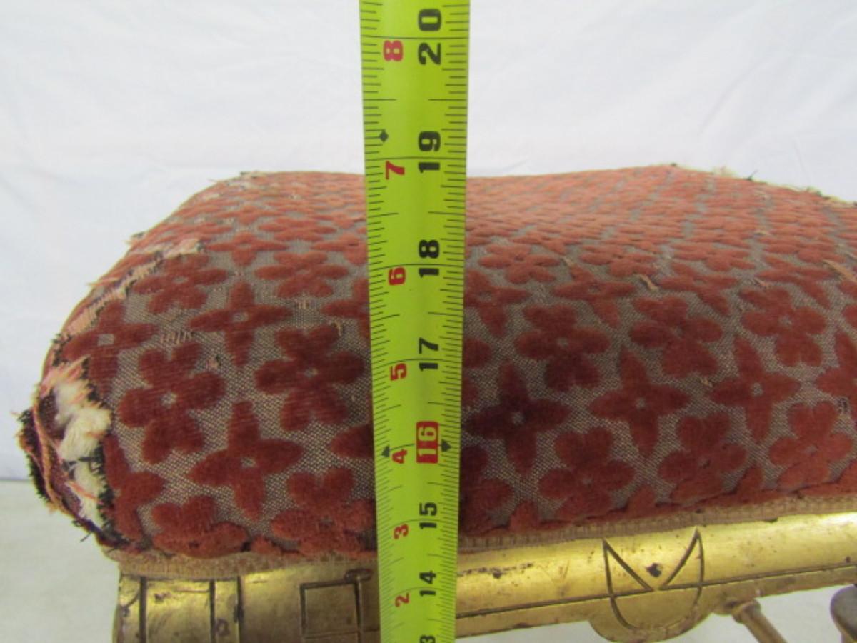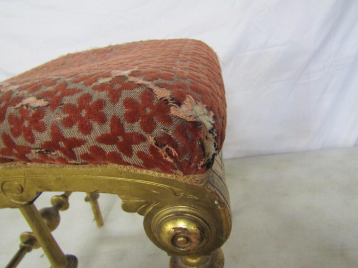 Antique Ornate Upholstered Ottoman/Small Seat. Please see all pictures- upholstery is damaged, needs repair.