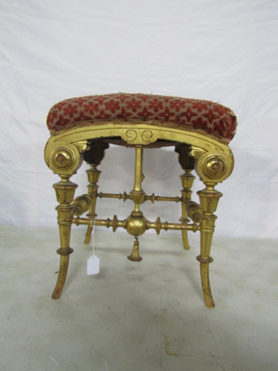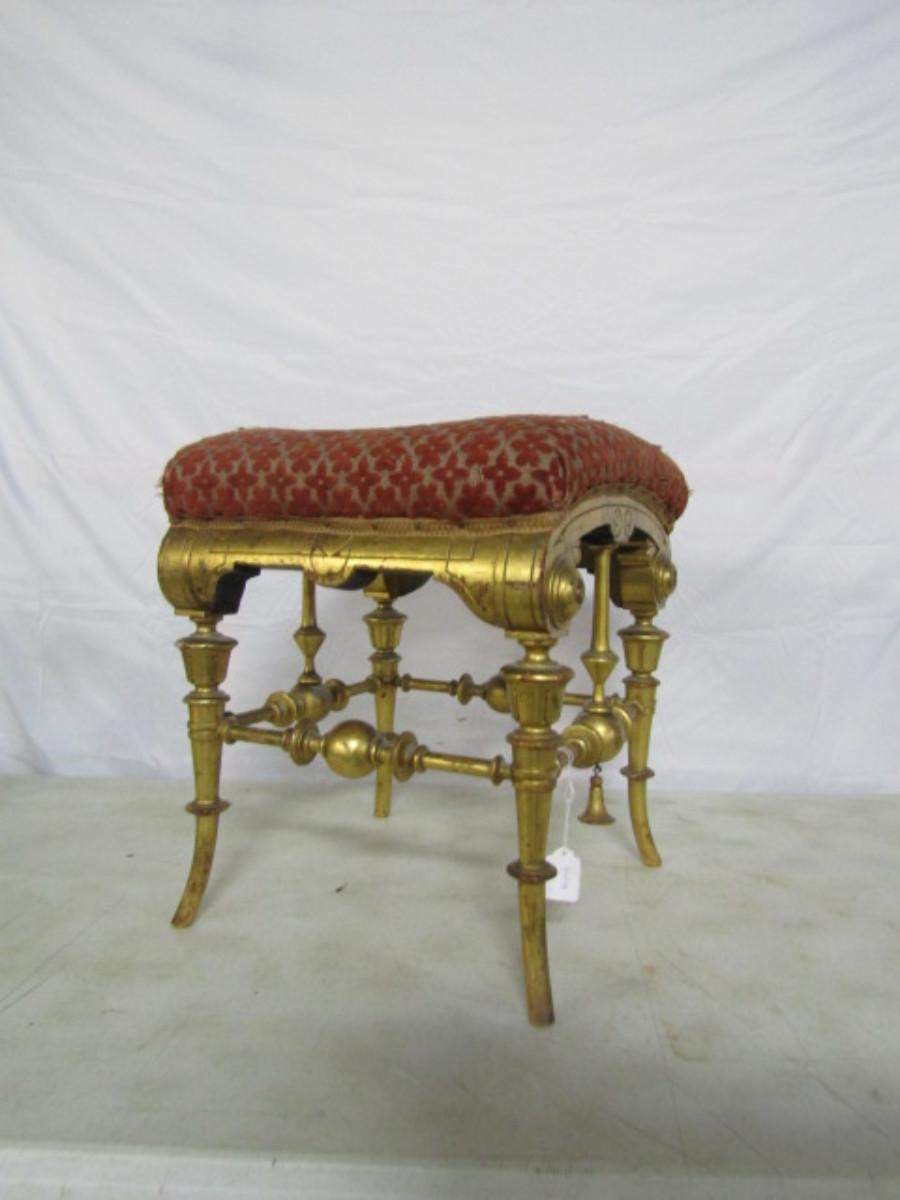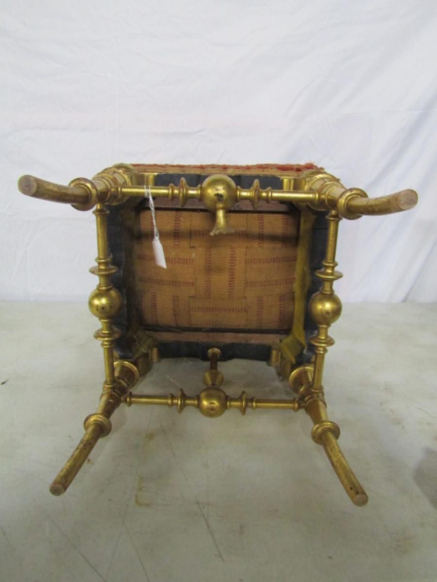Antique Ornate Upholstered Ottoman/Small Seat. Please see all pictures- upholstery is damaged, needs repair.