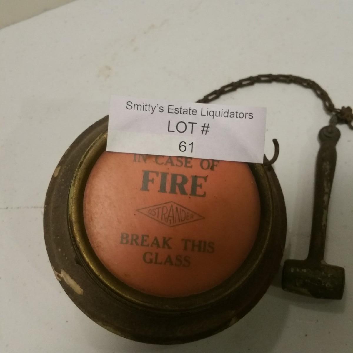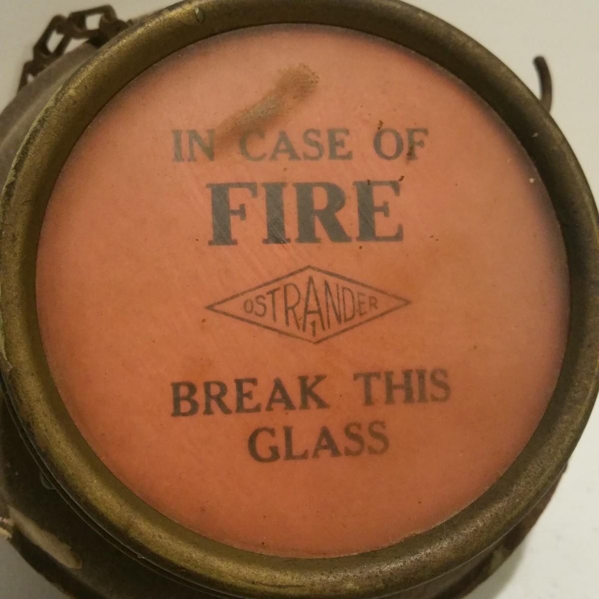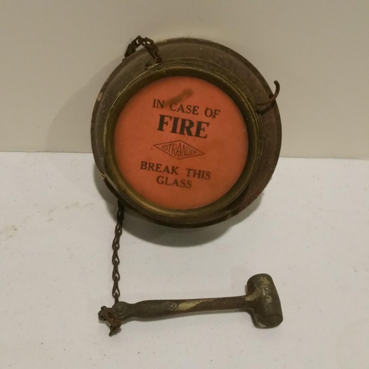 Antique Ostrander "In Case of Fire Break This Glass" Alarm Fireman Fire Department Decor