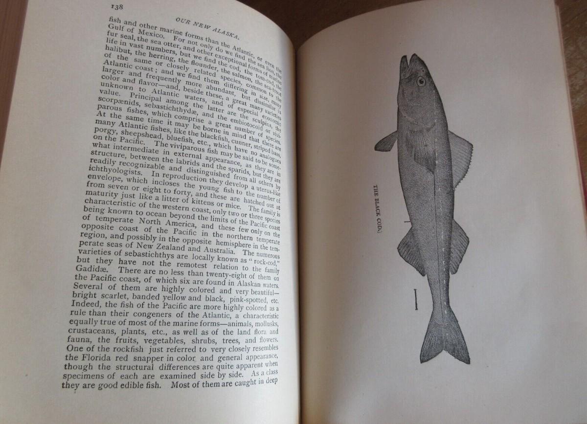 You get one antique Our New Alaska; or, The Seward Purchase Vindicated hardcover by Charles Hallock and published by Forest and Stream Publishing Co. in New York in 1886. It is illustrated by Prof. T.J. Richardson and is in English. It measures approximately 8.5 inches long by 6.25 inches wide. The book is in good condition. The binding is tight and the book is complete with no loose pages. The covers and edges do have some wear. The pages tanned slightly over the years, but are clean and free of writing. This was a book in the Northland College Library and there is a stamp that says that on the first blank page. There is a tear in the map and the page that follows. Please see all pictures. Thank you for looking. As a reminder, if this is a lot, we do not break up lots. Also, all items are prepacked, so each item is sent individually. Any item that qualifies for media mail and weighs over one pound will be shipped via media mail. Otherwise, the item will be shipped USPS ground advantage, or UPS ground. Shipping for this item is $8.00. Items ship within two days after payment is received. Item SKU is .