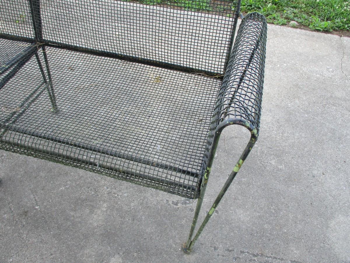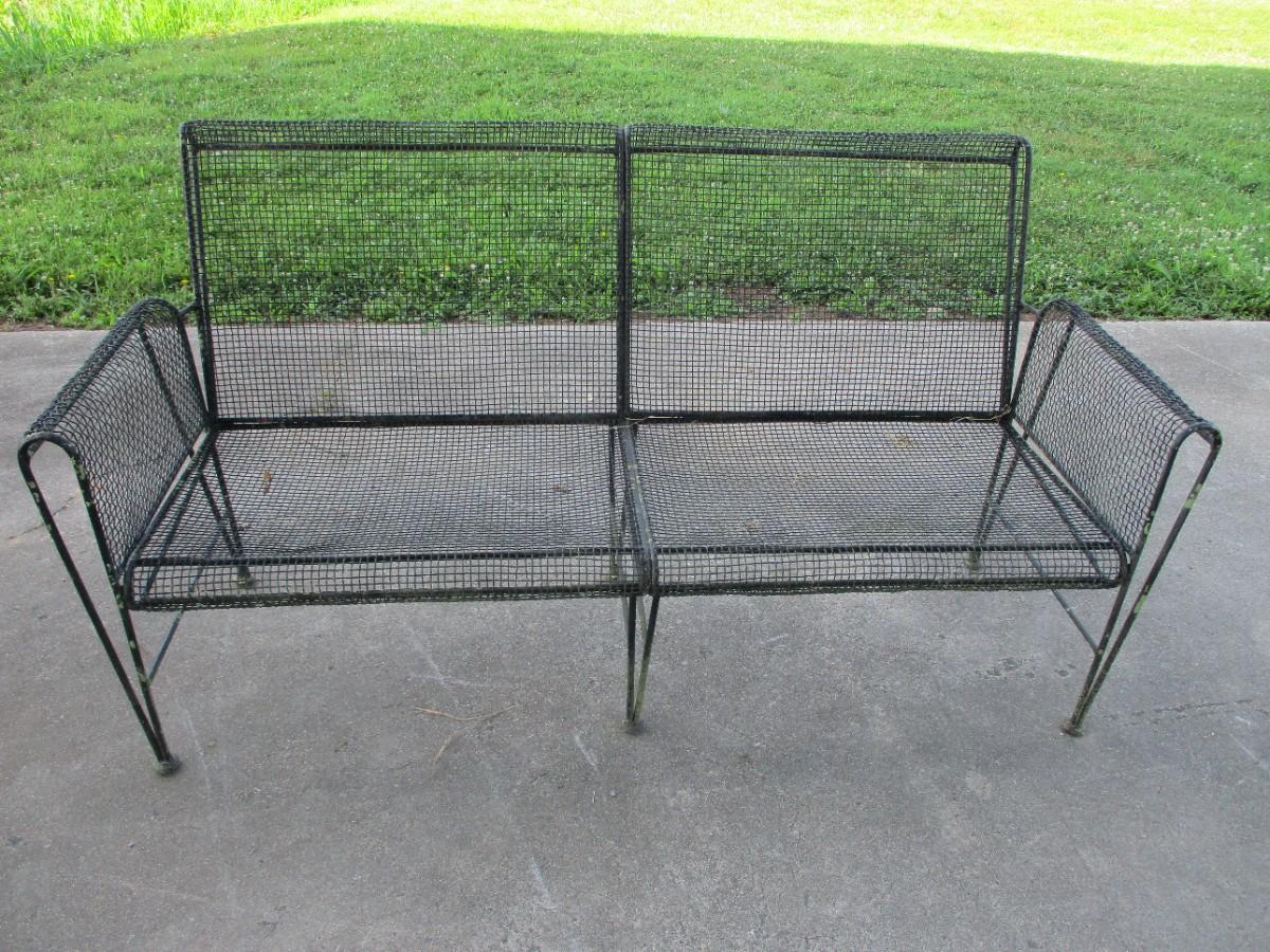 Antique Wrought Iron and Mesh Design Outdoor Double Seat Bench