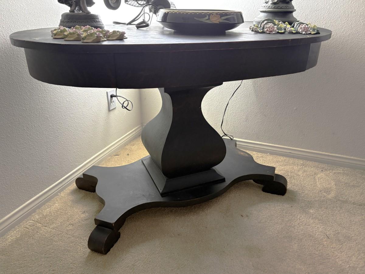 Antique oval lamp table with drawer