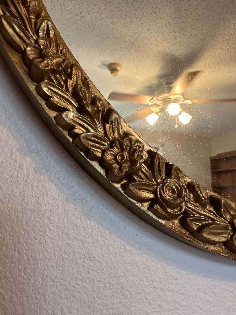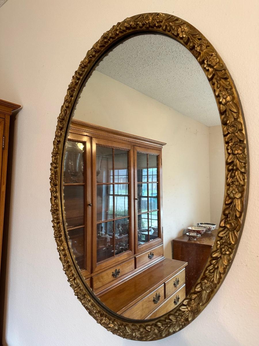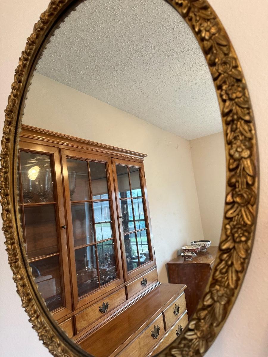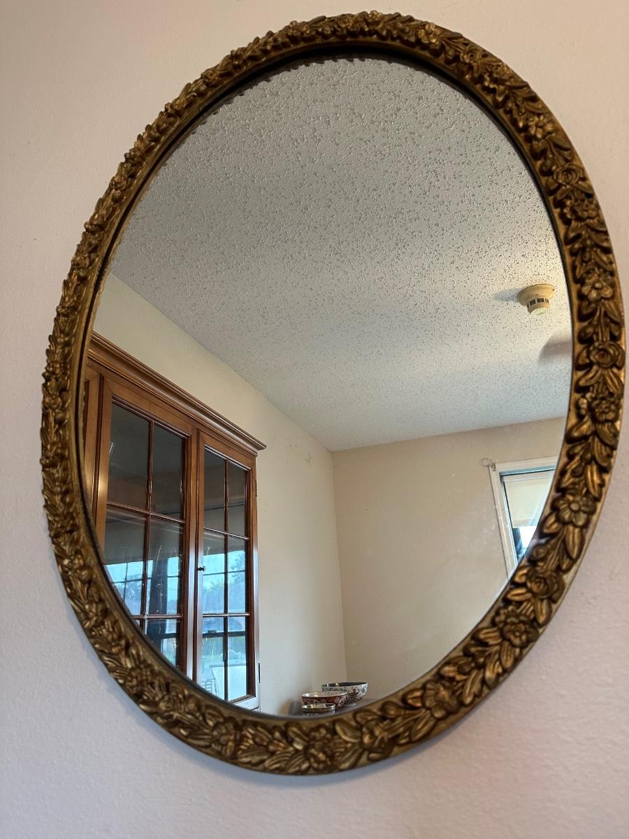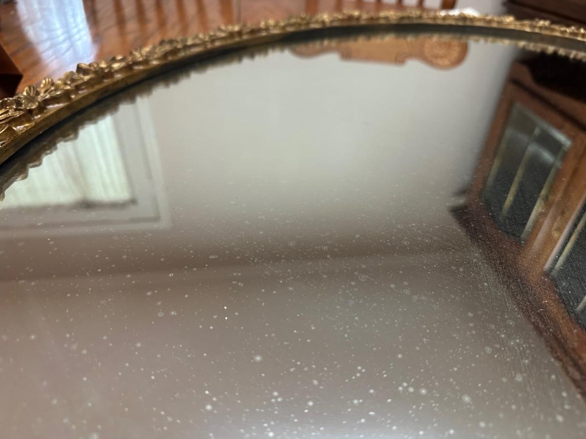 Mirror has some marking on the glass, please look at the pictures to see. The mirror is heavy!
