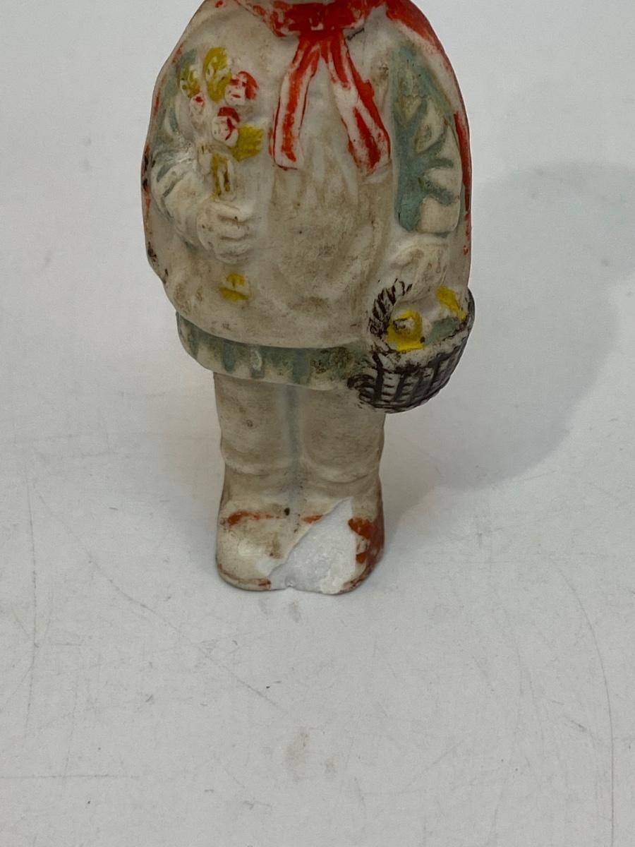 Antique Painted Bisque Dollhouse Dolls Japan Various Size. The largest girl has a chipped foot. All show signs of age discolor and paint wear but still in displayable condition.