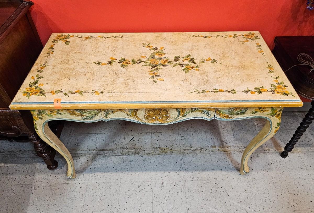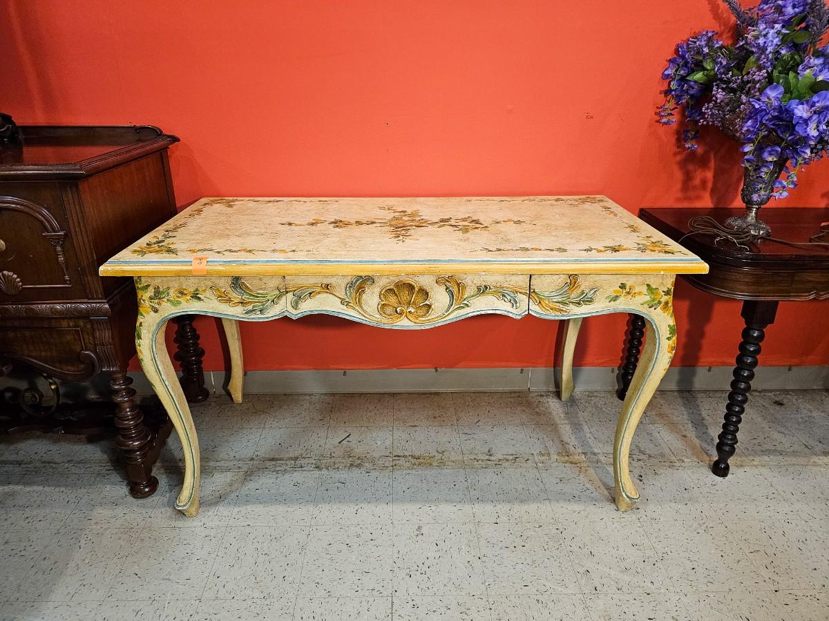20th century Italian painted desk, circa 1910, 54"W x 27"D x 31"H