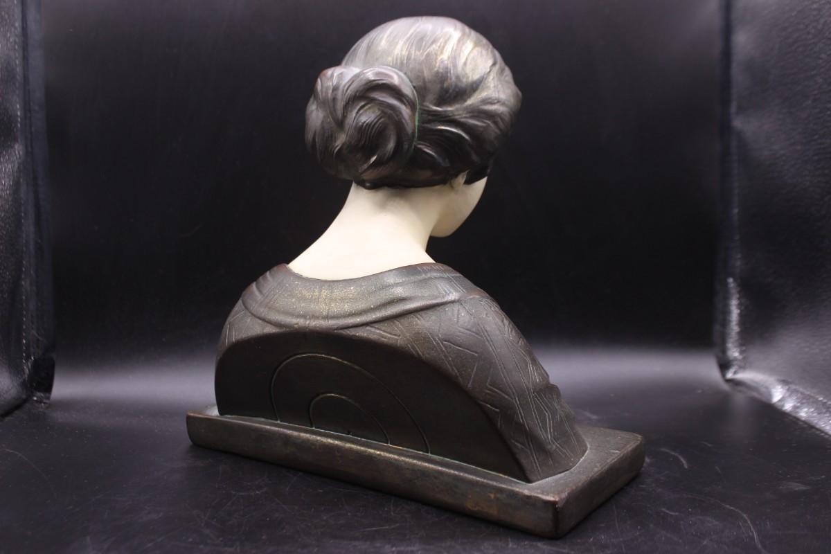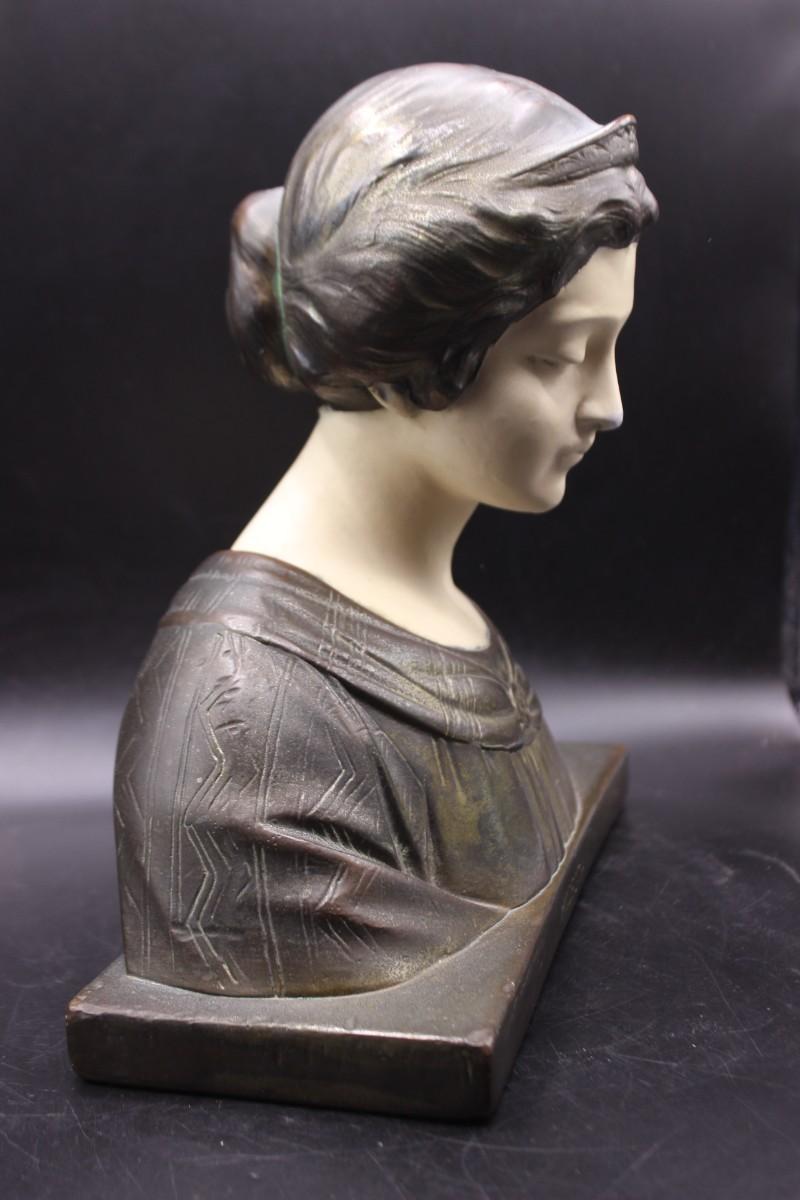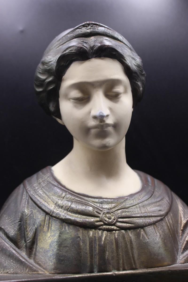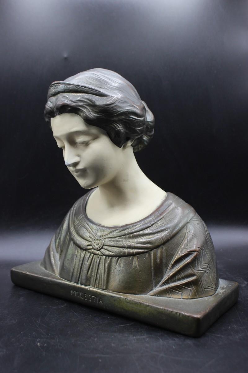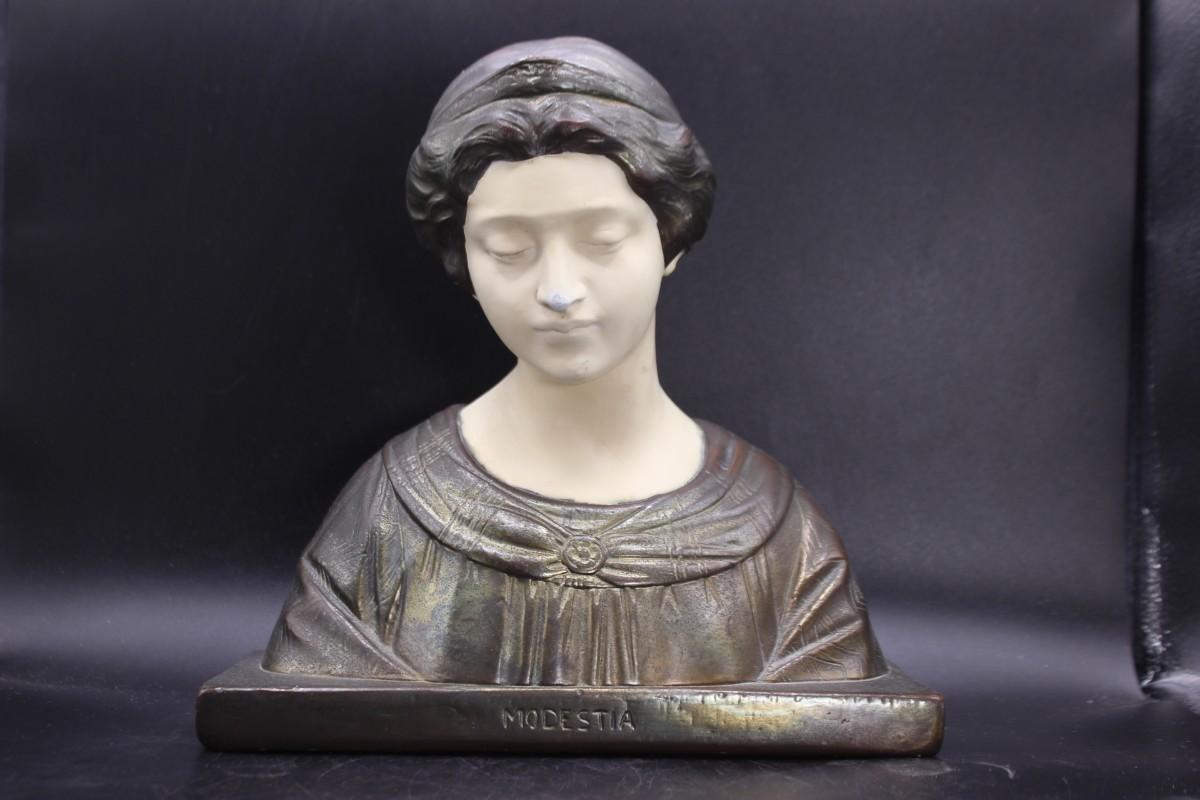 Antique Painted Metal Sculpture Bust Modestia after Giuseppe Bessi