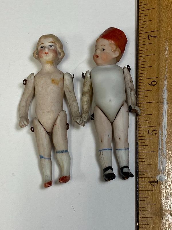 Antique Pair of 3" Bisque Jointed Dollhouse Dolls Germany YD#020-1220-00722