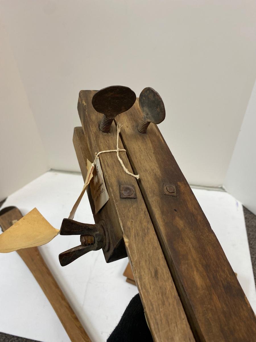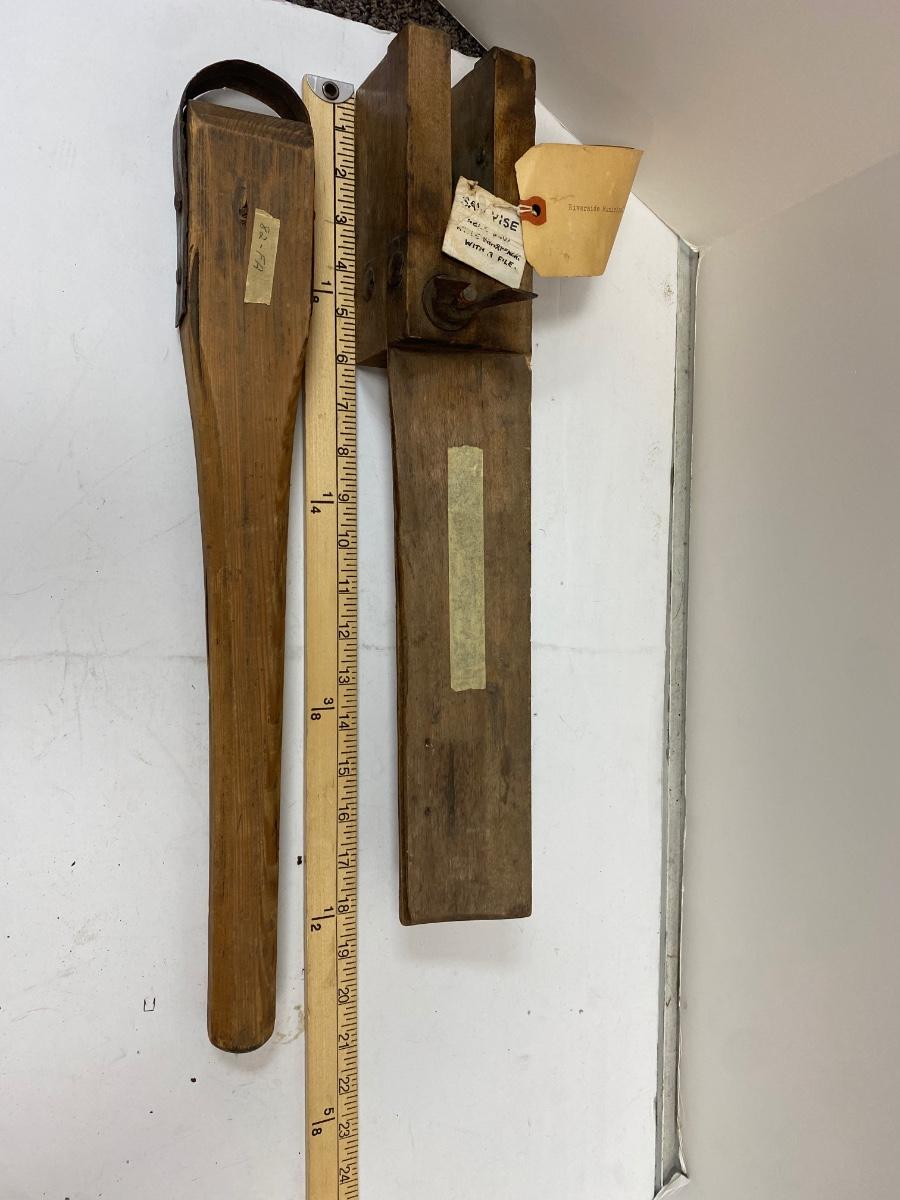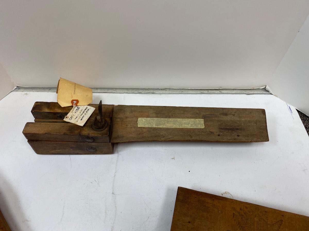Woodworking tools Antique Pair of Carders, Saw Sharpening Vise, Taper Handle Scraper Tool