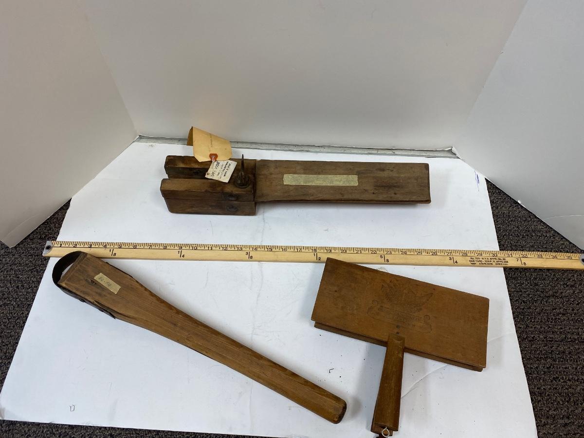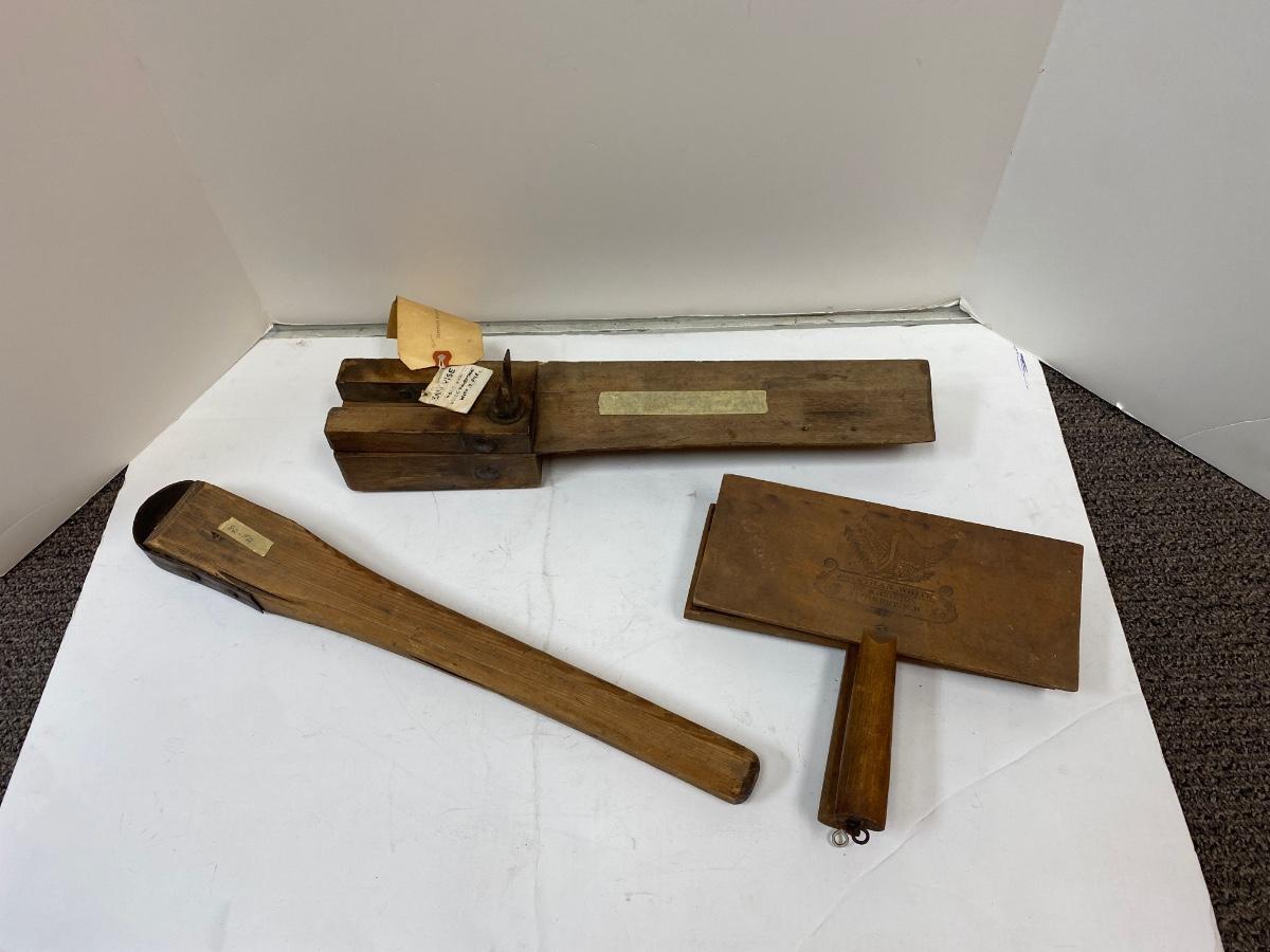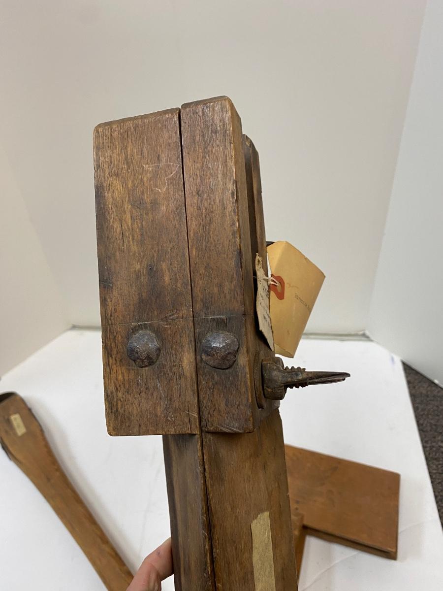 Woodworking tools Antique Pair of Carders, Saw Sharpening Vise, Taper Handle Scraper Tool