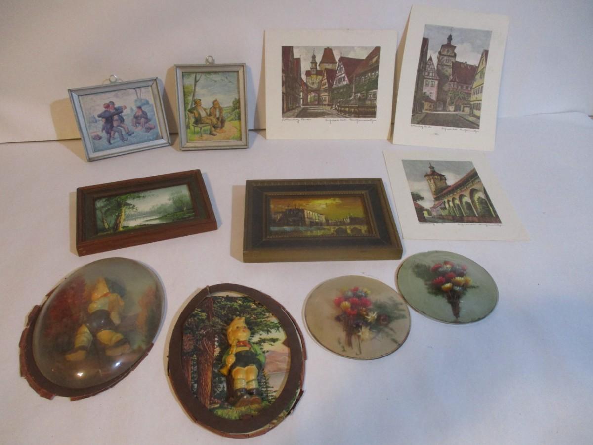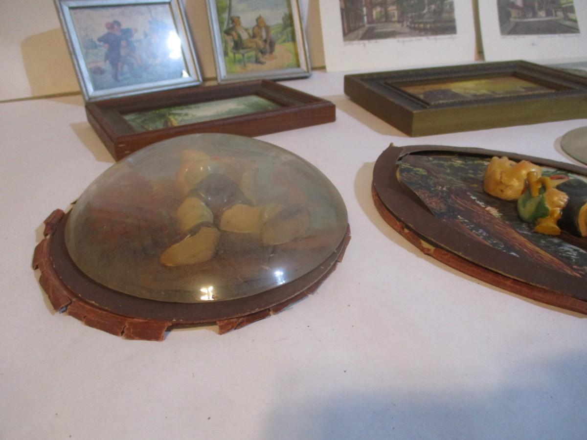 Antique Pair Of Convex Bubble Glass Dried Flowers Hummel Art Paintings & Prints