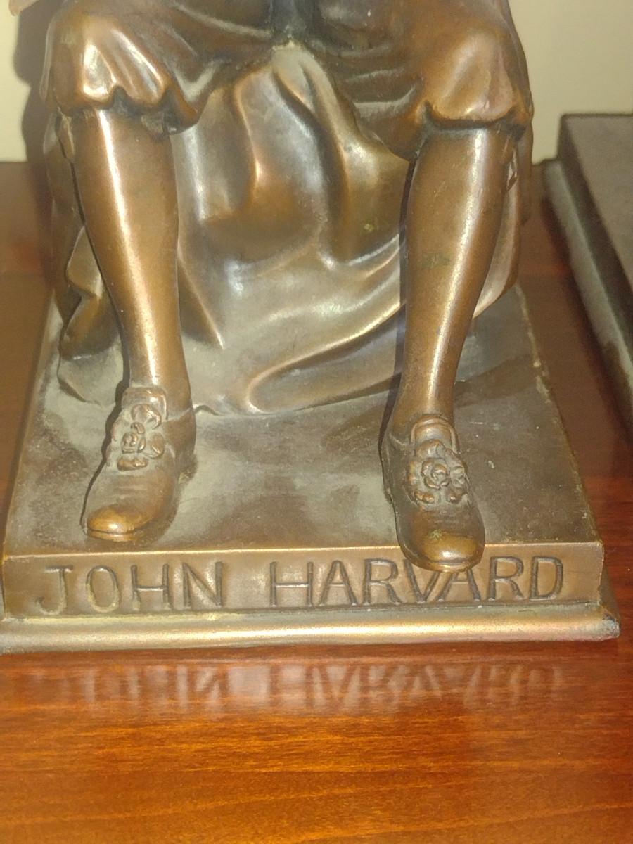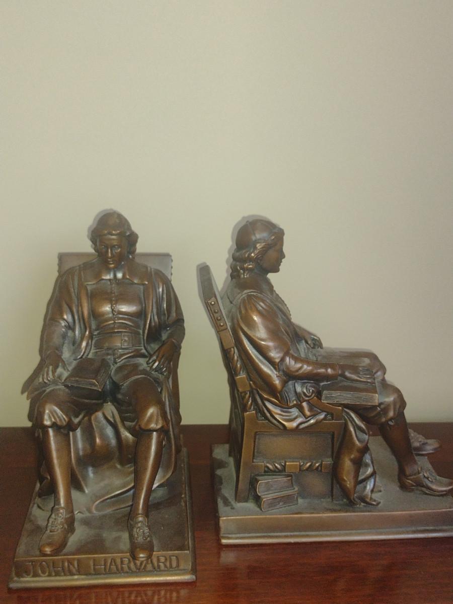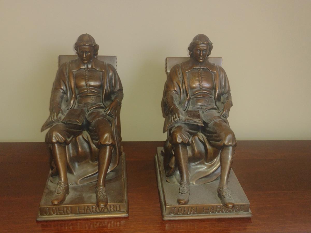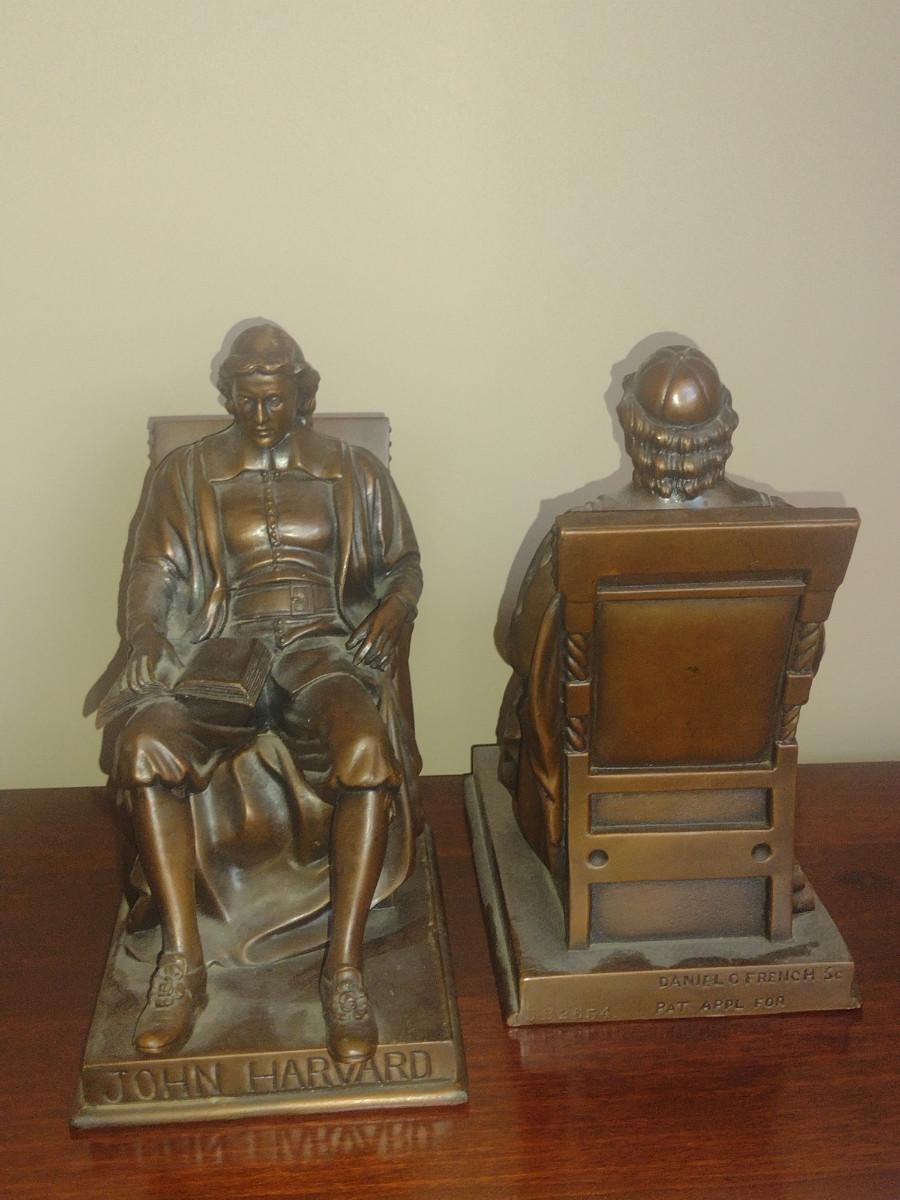 Antique Pair of Daniel C. French Bronze John Harvard Bookends