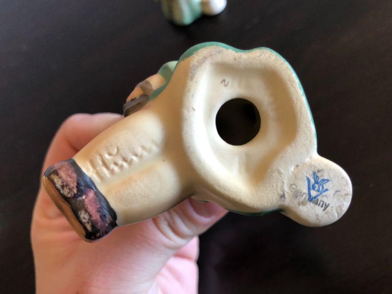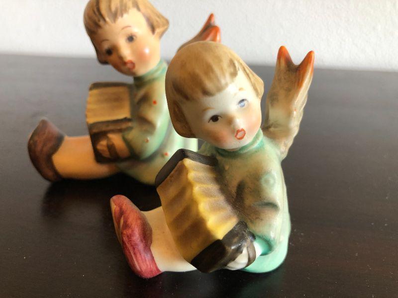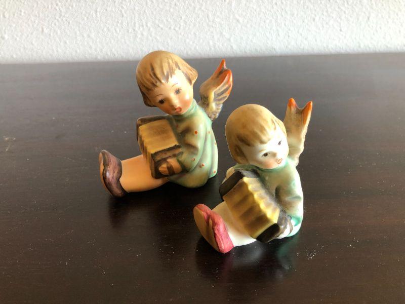 Adorable pair of antique Hummel accordion playing angel girls, stamped 1/39/0.
