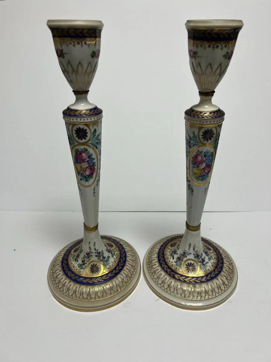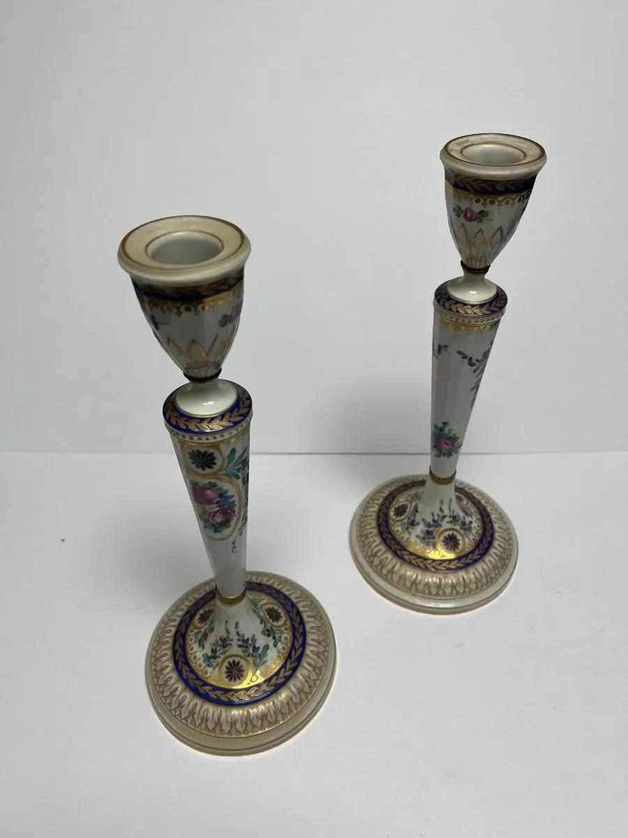 Antique Pair of Ovington Brothers Dresden 13-1/2" Porcelain Candle Holders in VG Preowned Condition. $15 DOMESTIC SHIPPING.
