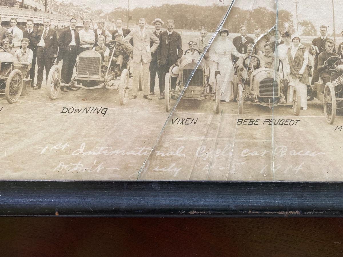 Antique panoramic photo of 1st international cycle car races Detroit 1914. Nice piece piece of American history. Needs new glass. 44-1/2w x 7-1/2h