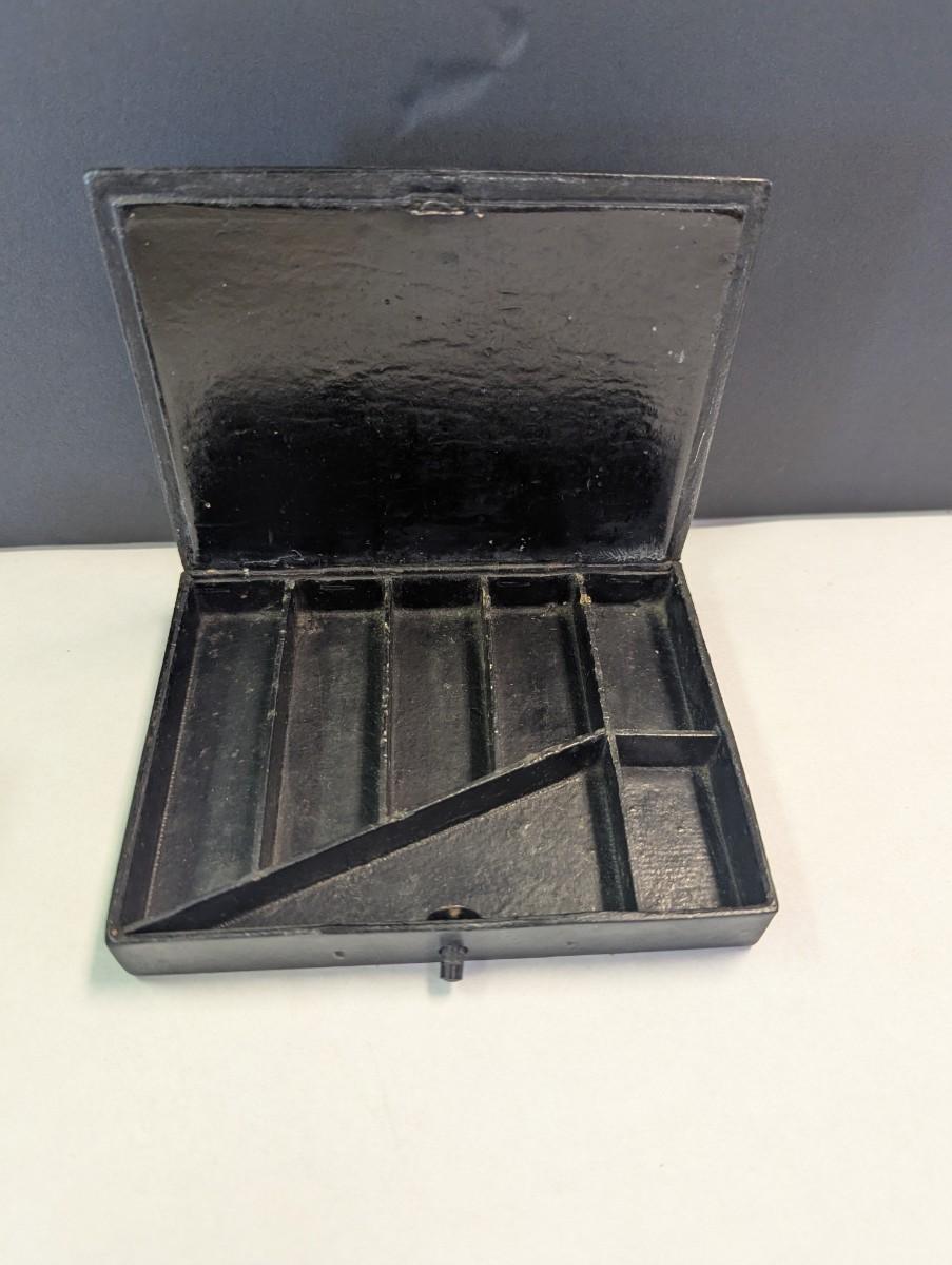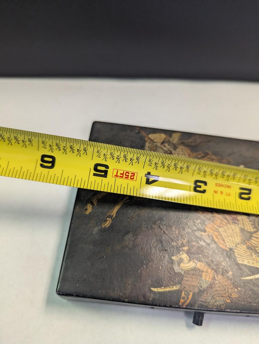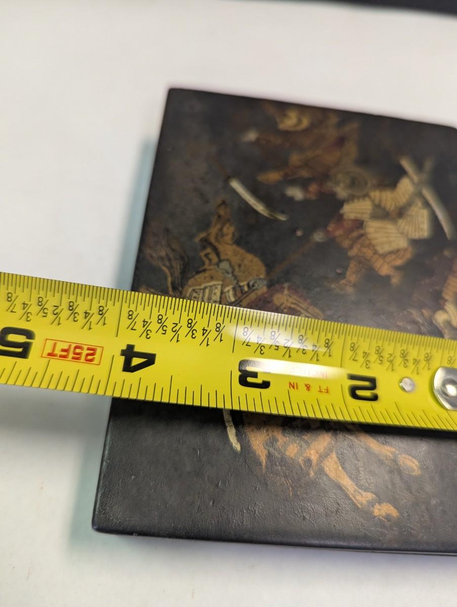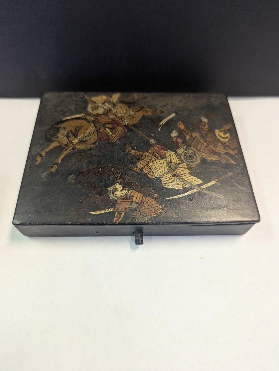 Antique Paper Mache Chinese Sectioned Sewing Jewelry Storage Battle Scene Box