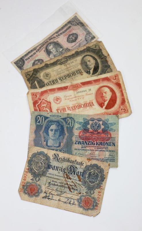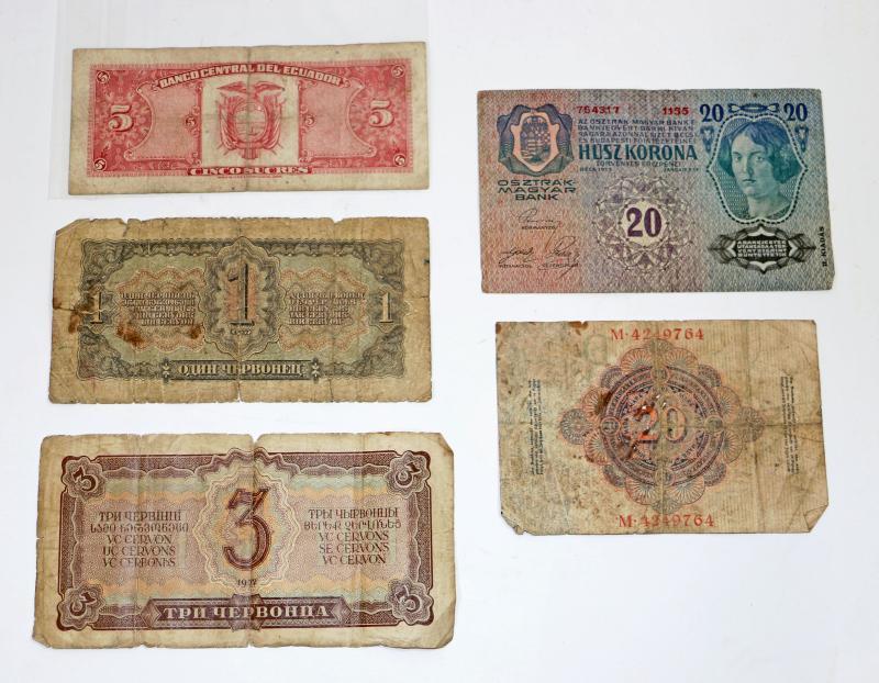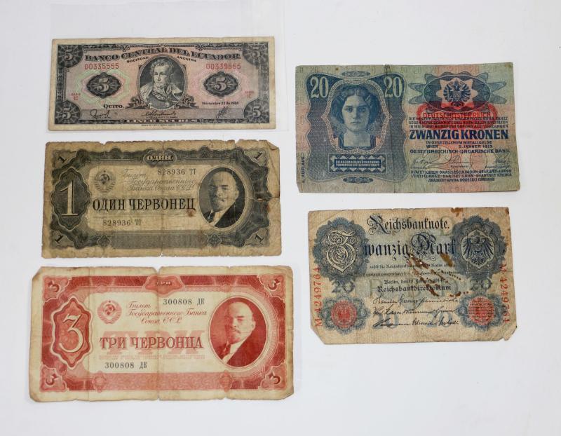 Antique paper Money Lot of 5 - International Banknotes, Russia, Austria, Hungary